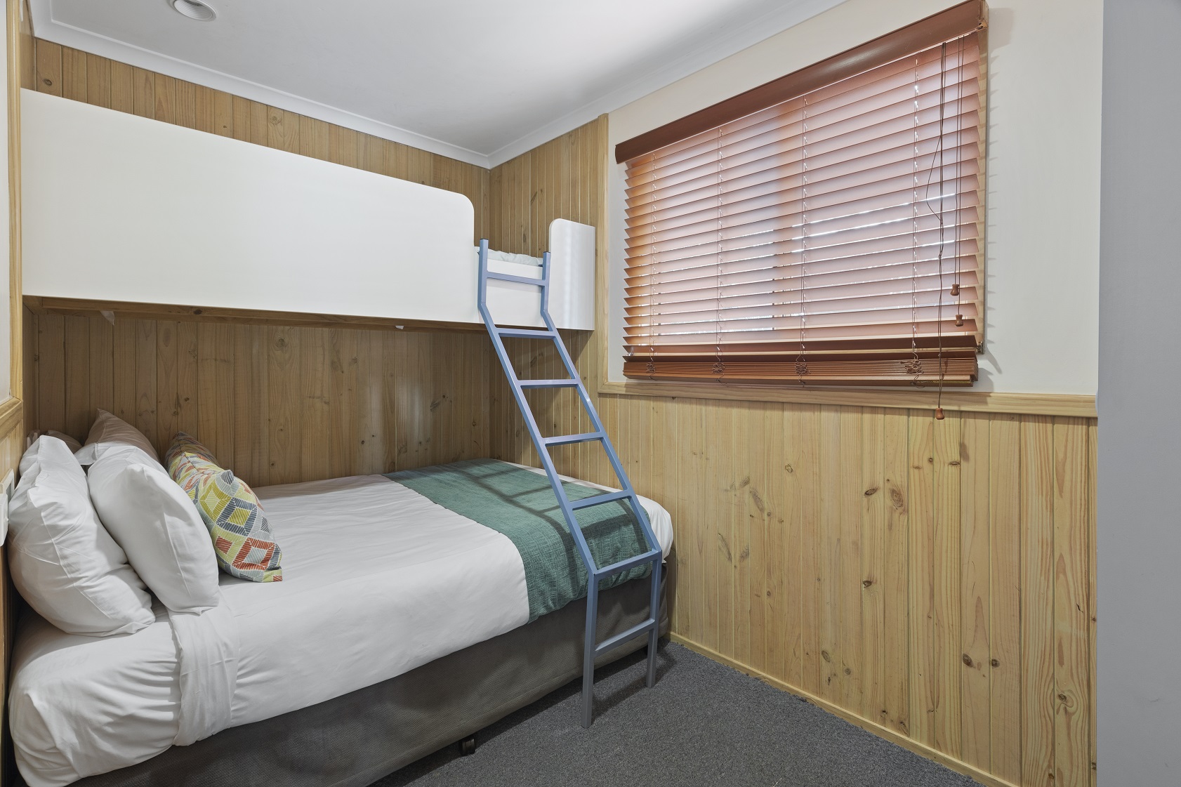 1. Bunk Beds: Please be advised that under Workplace Health and Safety obligations we must comply with the Australian Standard AS/NZS 4220:2003 which states “children under the age of nine years are not permitted to use the top bunk, children must not play on the top bunk". Please take this into consideration when making your booking.