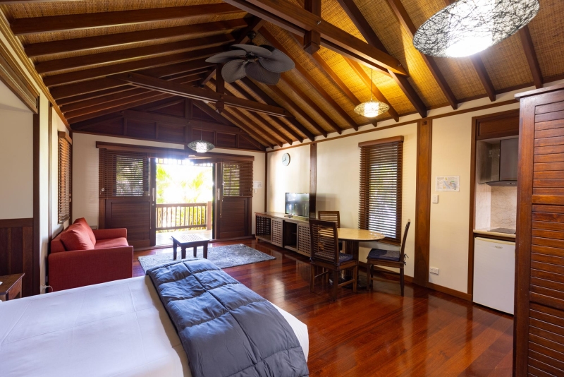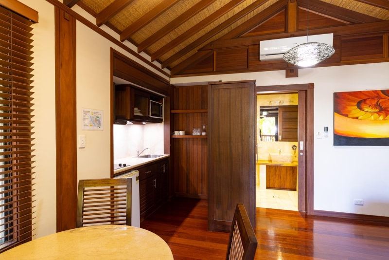 In a central location within the park. One queen bed. Features modern furnishings; air-conditioning; full kitchen with stove, microwave, fridge and tea & coffee facilities; Covered parking next to Villa.