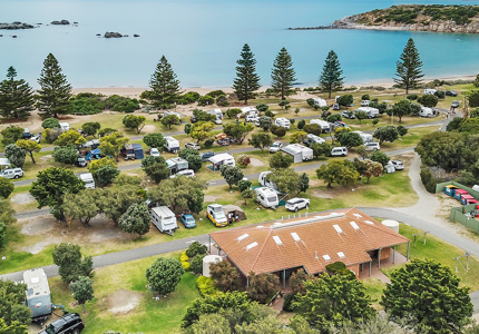 One of South Australia's safest swimming beaches, Horseshoe Bay is seasonally patrolled and perfect for swimming, body surfing, walking or just doing a spot of whale watching. The park offers an extensive children's adventure playground, jumping pillow, basketball and lawned games area.