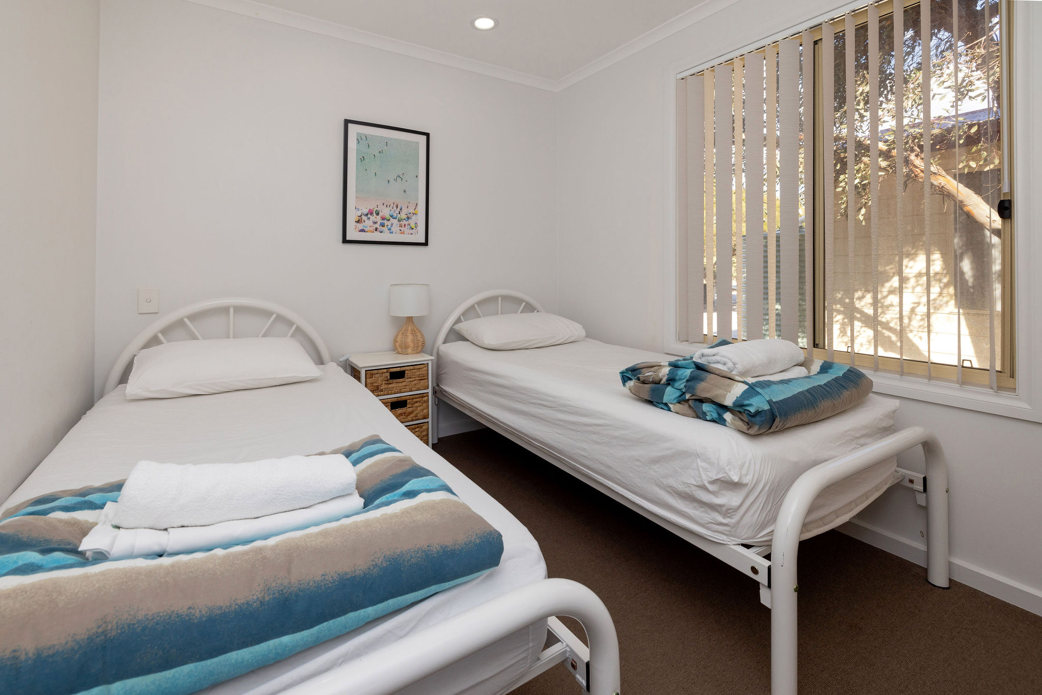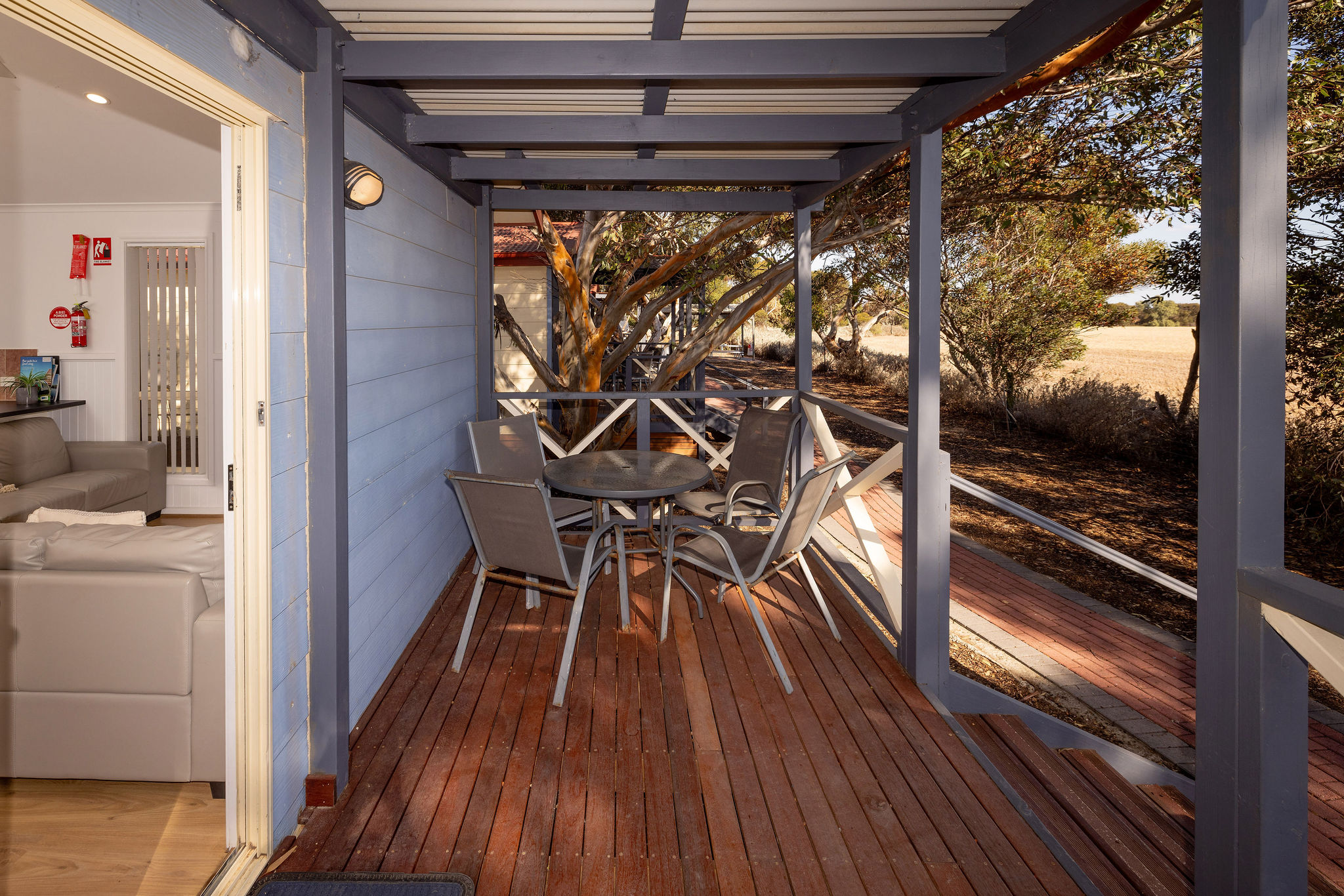 The cabin also has a furnished deck. Australian Standards state that children under nine years old should not sleep on top bunks. Please take this into consideration when making your booking.