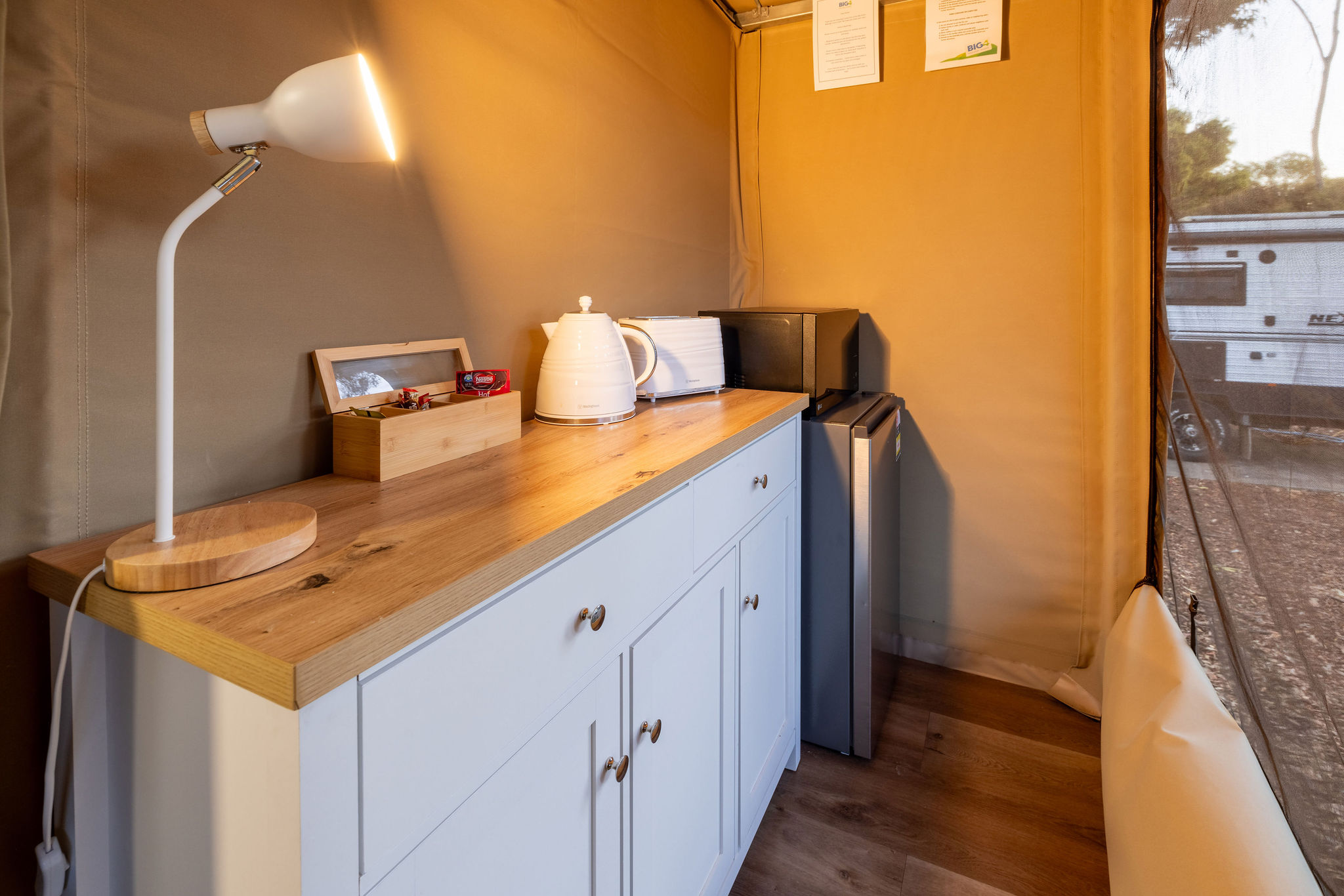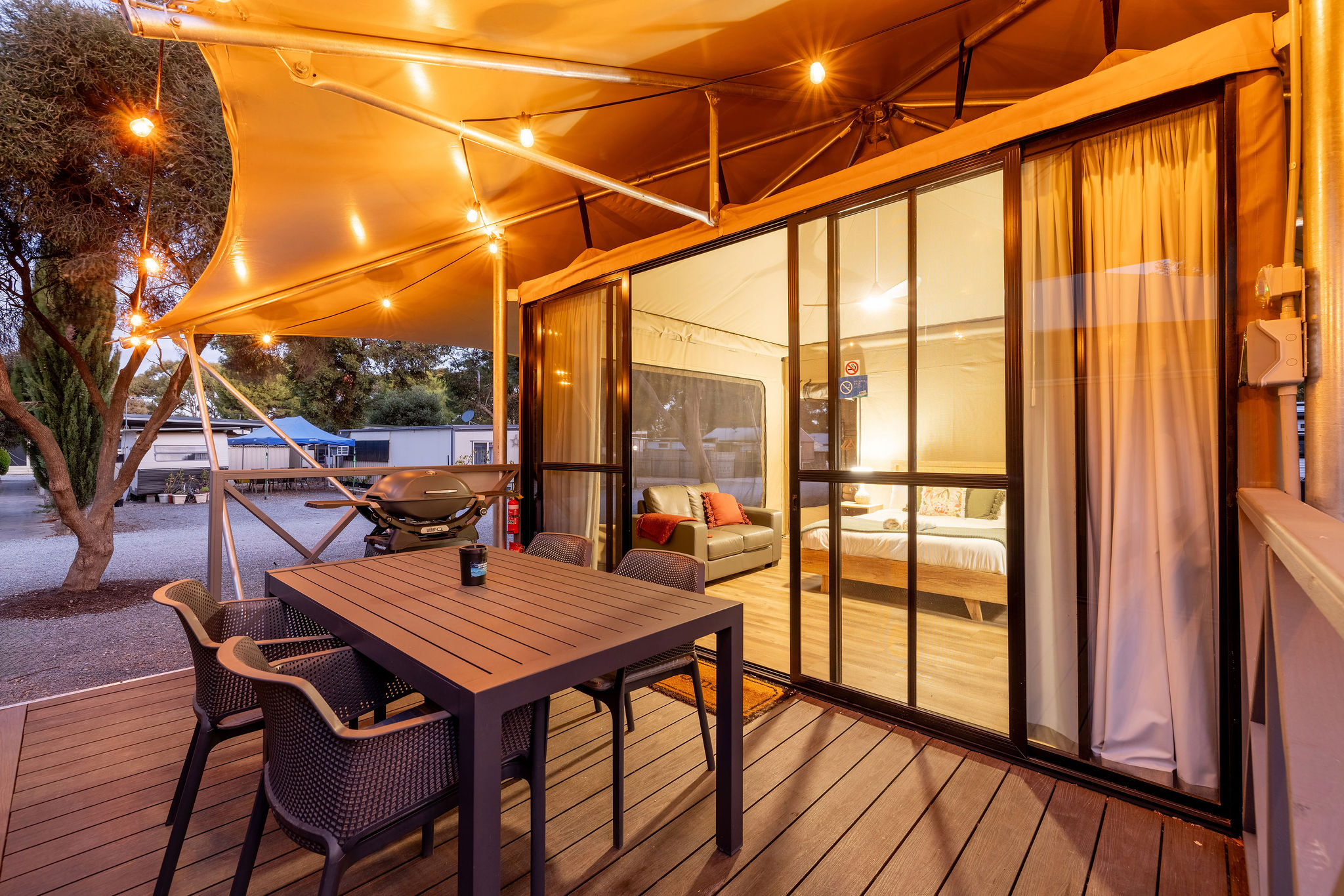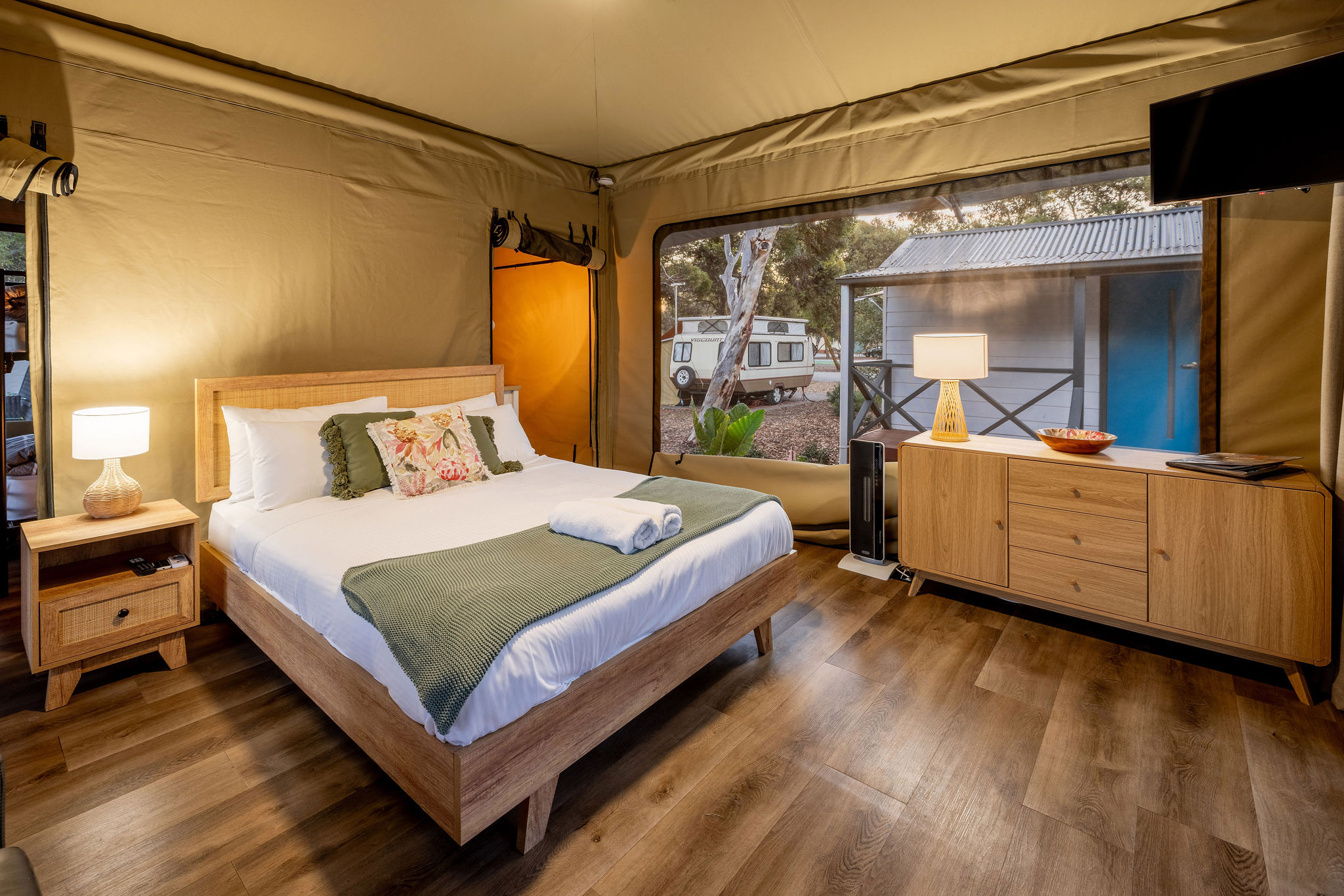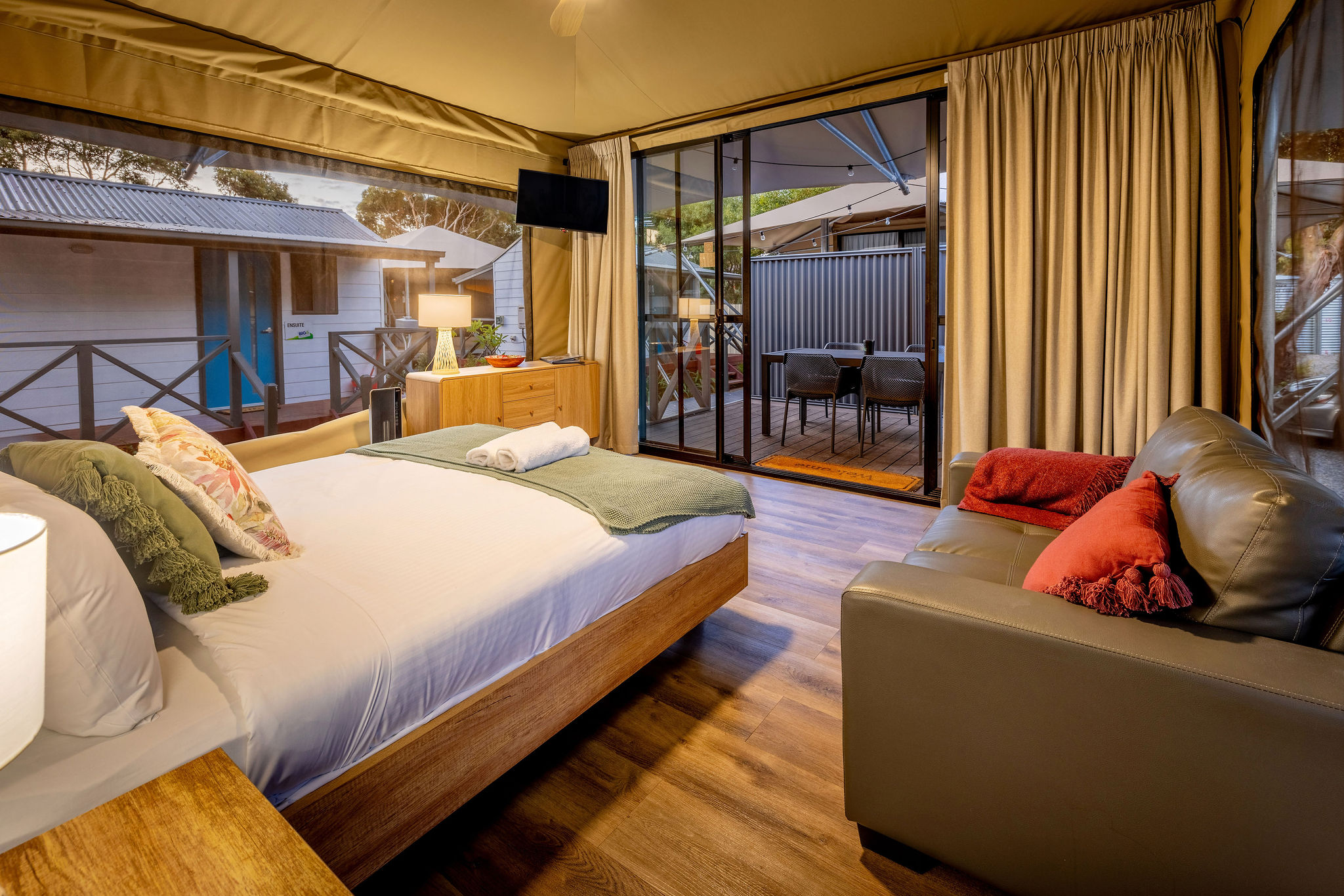 Unique glamping tents comfortably furnished & stylishly decorated.
