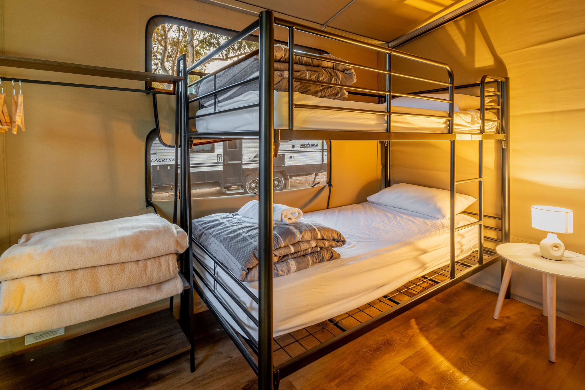 Australian Standards state that children under nine years old should not sleep on top bunks. Please take this into consideration when making your booking.