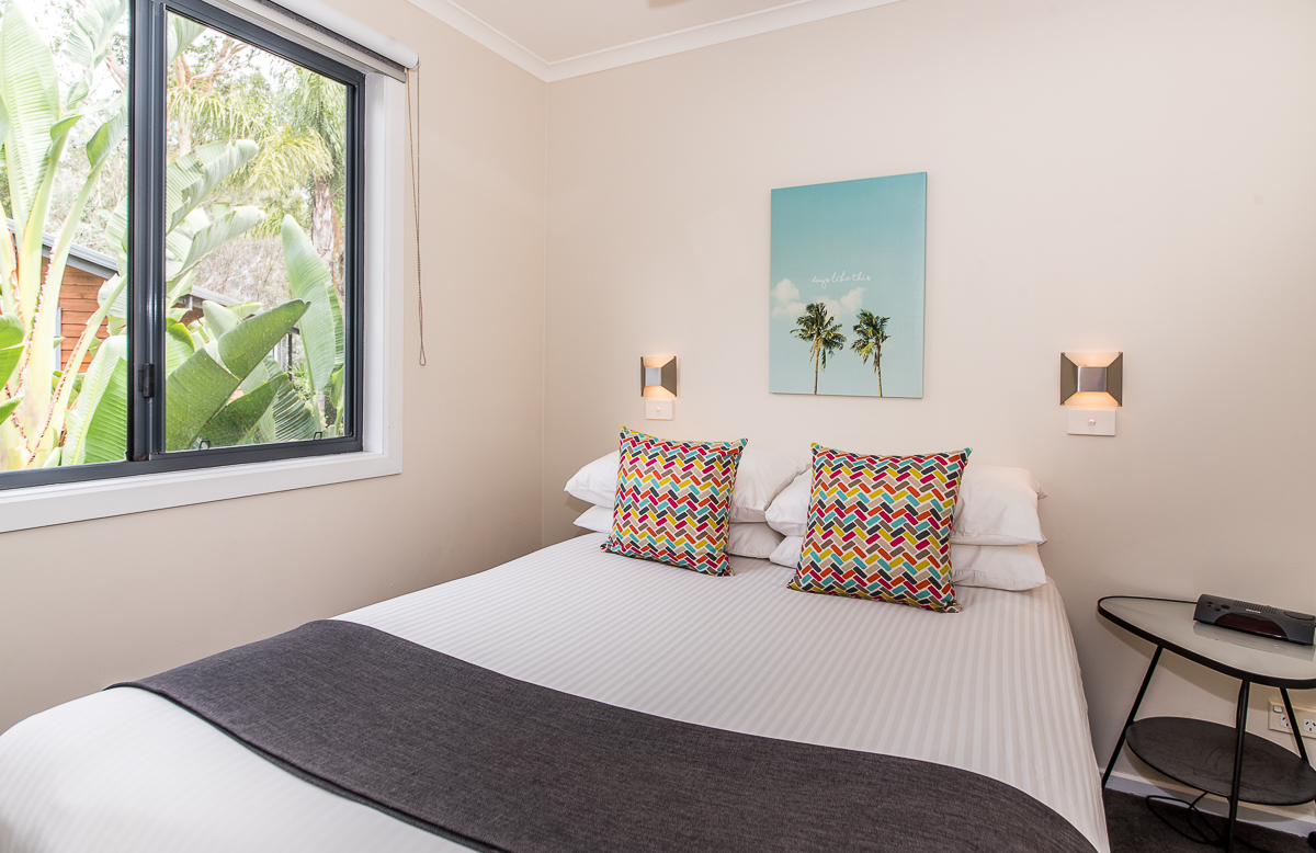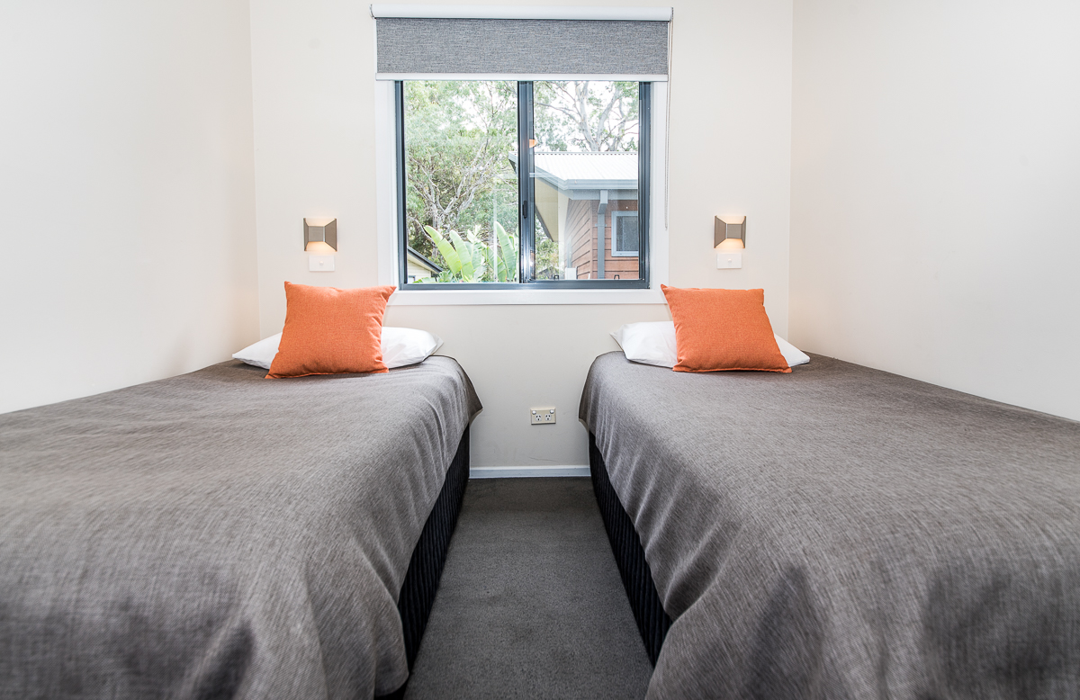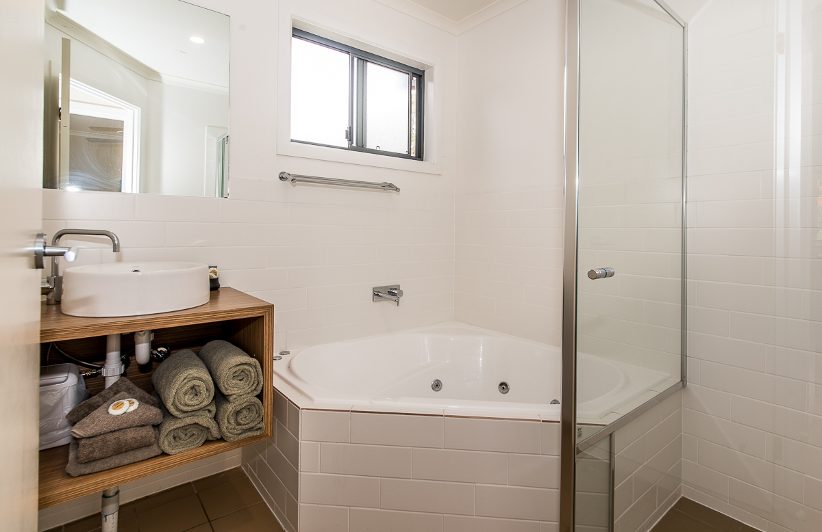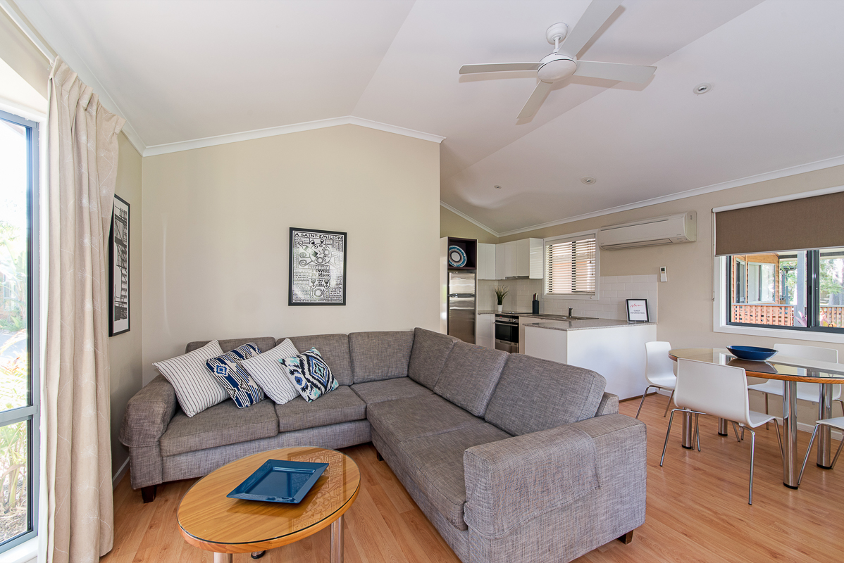 These 2 Bedroom Bungalows sleep 4 people and include: 2 bedrooms - 1 double, 2 singles, private decking area, bathroom with spa bath, carport, reverse cycle air conditioner, full kitchen with dishwasher, flat screen TV, DVD player, CD player. All bedding and towels supplied.