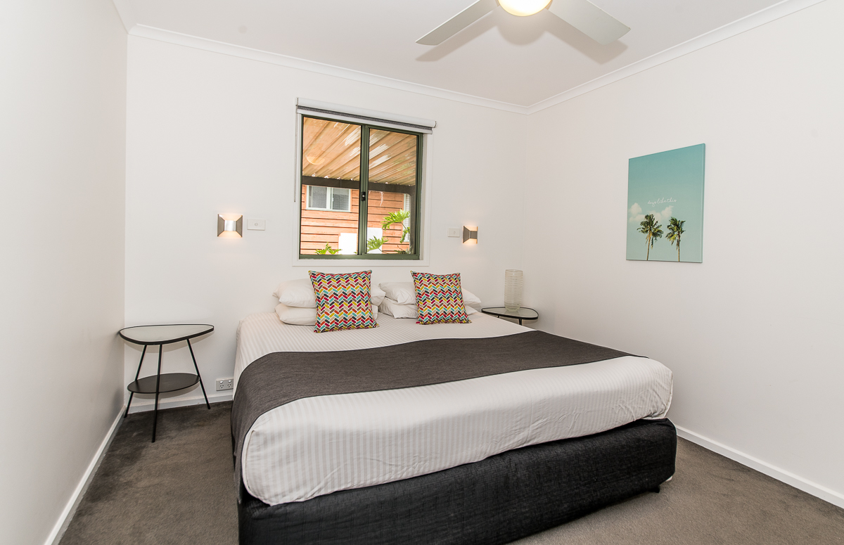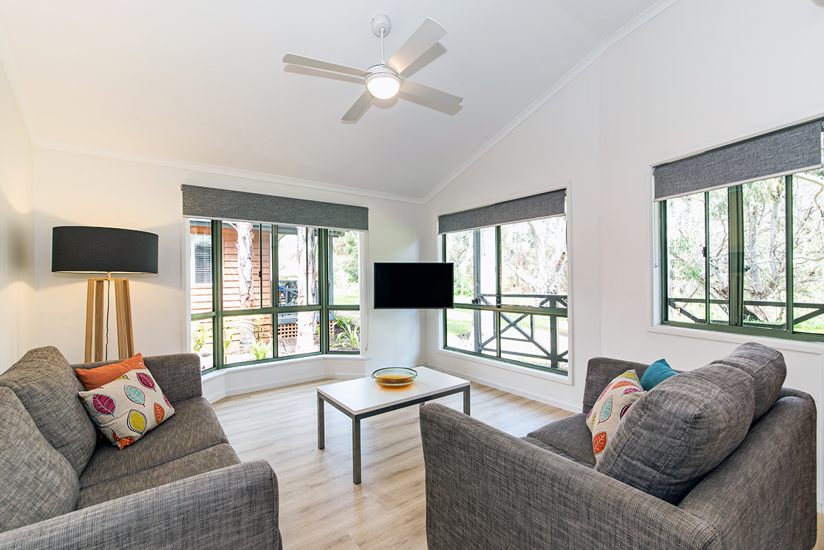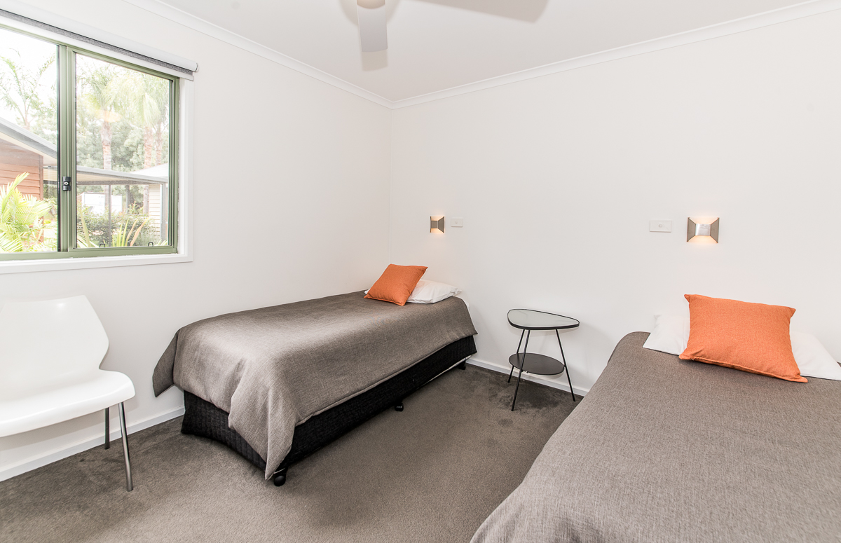 These 3 Bedroom Bungalows sleep up to 6 people and include: 3 bedrooms - 1 king, 4 singles, bathroom with spa bath, private decking area, carport, reverse cycle air conditioner, full kitchen with dishwasher, flat screen TV, DVD player, CD player. All bedding and towels supplied.