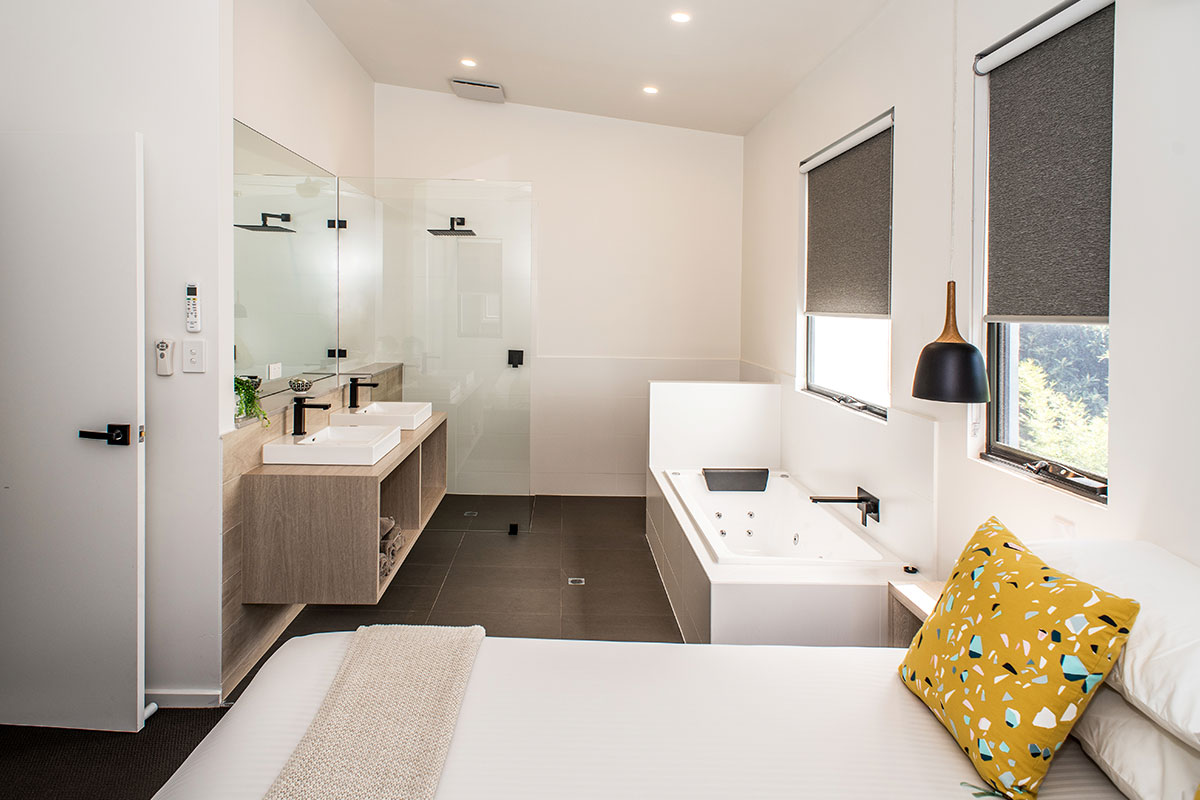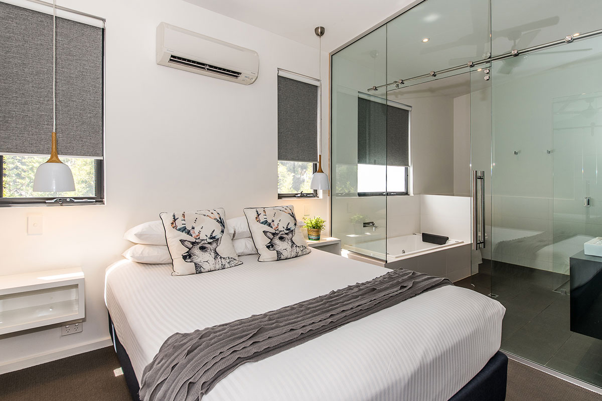 Overlooking our stunning 45-metre lagoon pool, indoor heated pool and water park; these apartments have everything you need while away from home. A stunning architectural design of iron, honed concrete and timber, our apartments are as striking from the outside as they are inside. All apartments have private pool access, outdoor entertaining area with built-in BBQ and wide opening glass sliding doors.