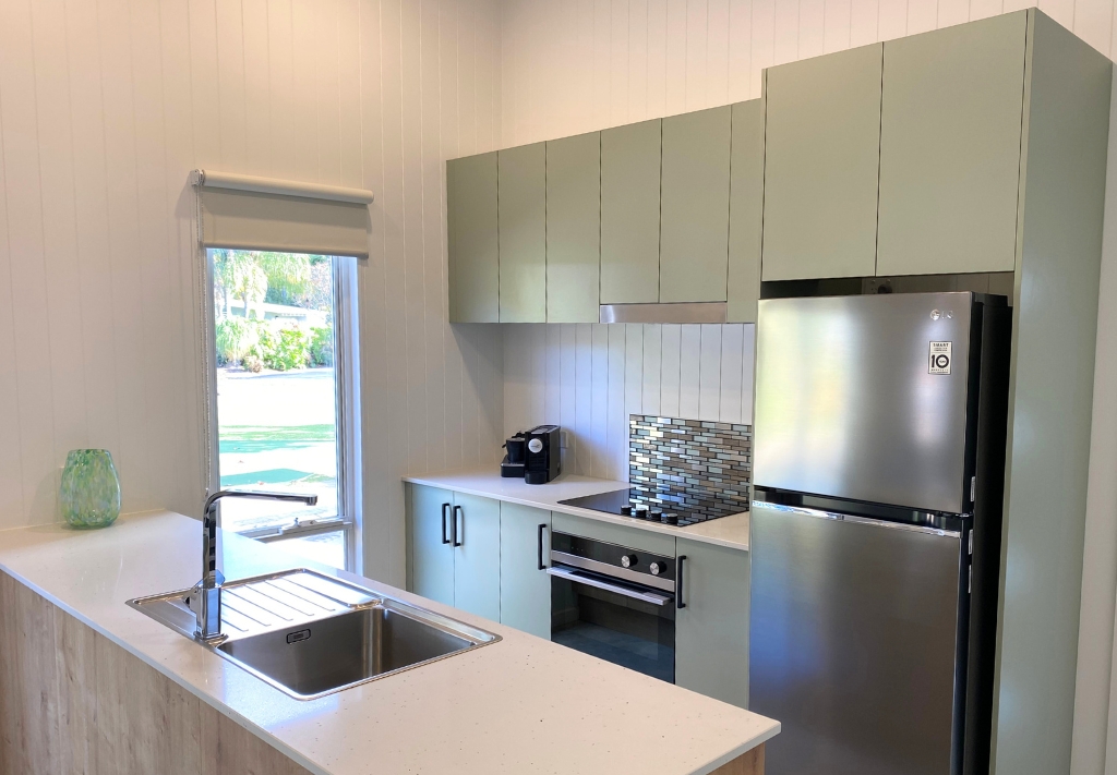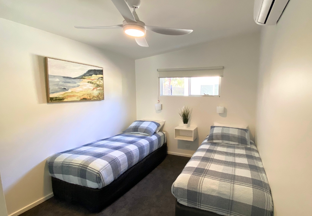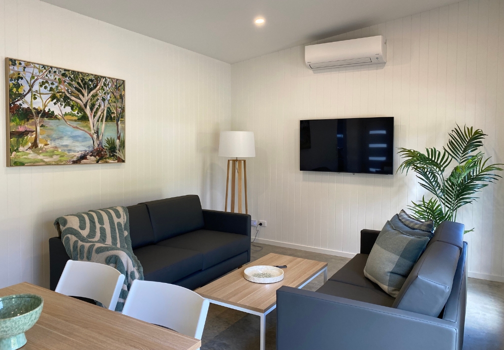 These Lodges feature polished concrete floors, have 2 bedrooms and a main bathroom with separate w/c. The main bedroom has a queen-size bed while the second bedroom features 2 separate single beds, both bedrooms have a TV, fan and air-conditioning. There is also a private deck with an outdoor setting.Availability