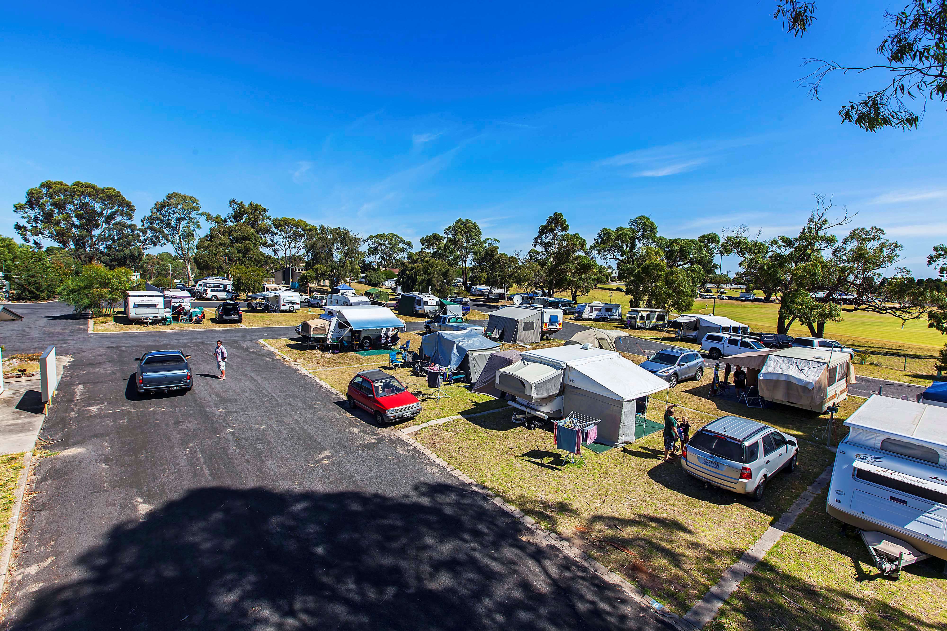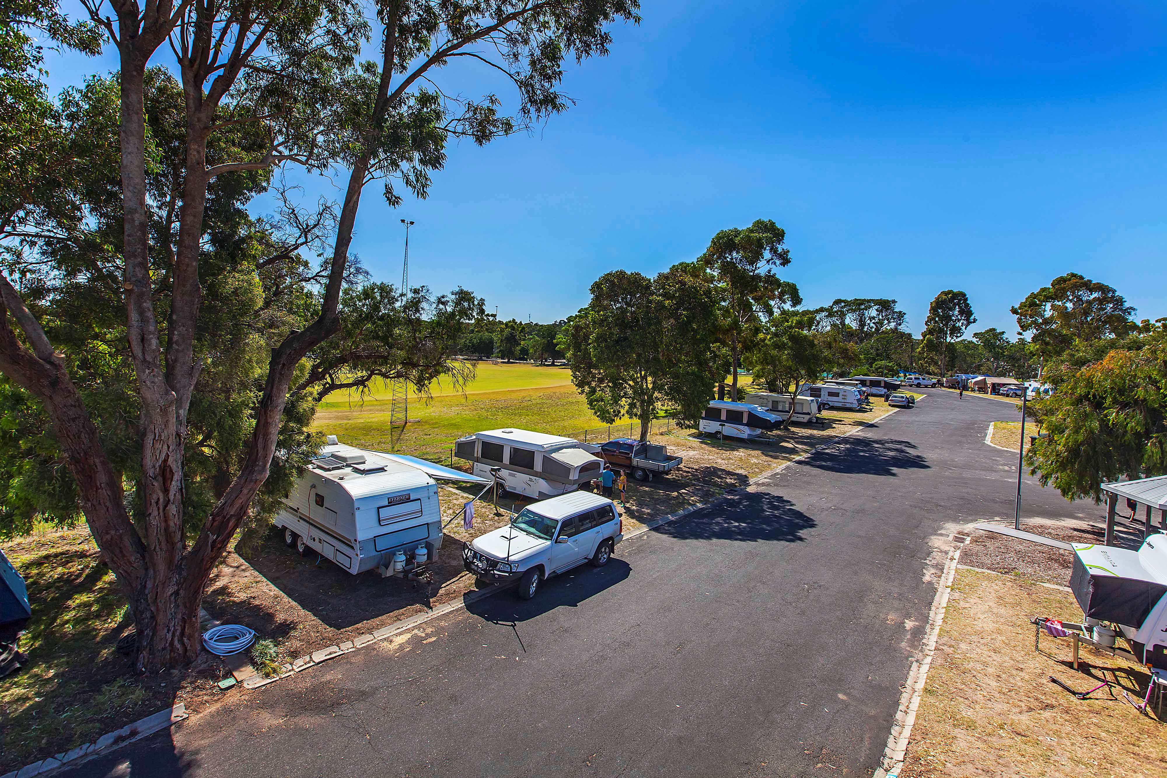 These sites are convenient to a range of amenities and facilities within the Park and are either gravel or grass base with access to water. Each site can occupy up to 6 people and is suitable for vehicles up to 36ft in length. Grass sites are suitable for tents.