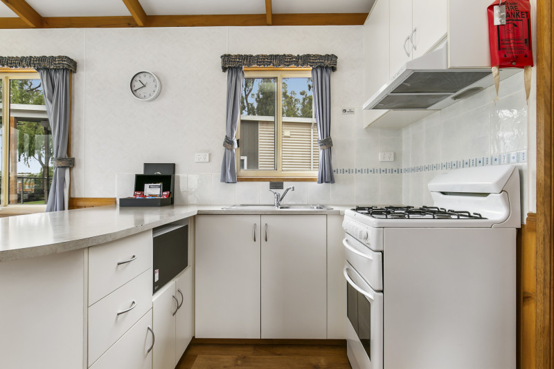 The villa has a self-contained kitchen including a fridge, microwave, stovetop and plenty of crockery and cutlery with a separate dining area, and a TV in the living area. The bathroom includes a shower, toilet and vanity. The villa is air-conditioned for your comfort.