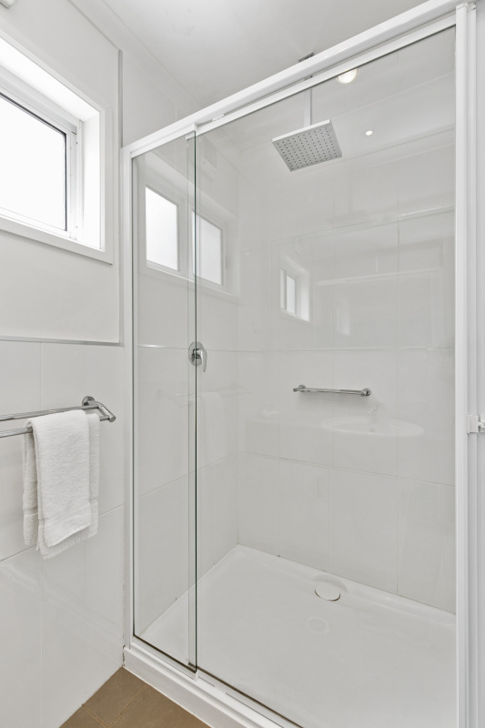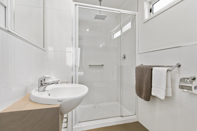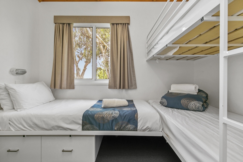 In this open-plan villa, you’ll find a queen bed in the main bedroom, two single beds in the second bedroom (which can be arranged as a king bed), and one set of bunk beds with a single bed in the third bedroom. The self-contained kitchen is equipped with a dishwasher, fridge, microwave, stovetop, and plenty of crockery and cutlery. Enjoy a separate dining area and a cozy living space with a TV. A Weber BBQ is also provided, perfect for relaxed outdoor dining. The bathroom includes a shower, toilet, and vanity, and the villa is air-conditioned to keep you comfortable throughout your stay.