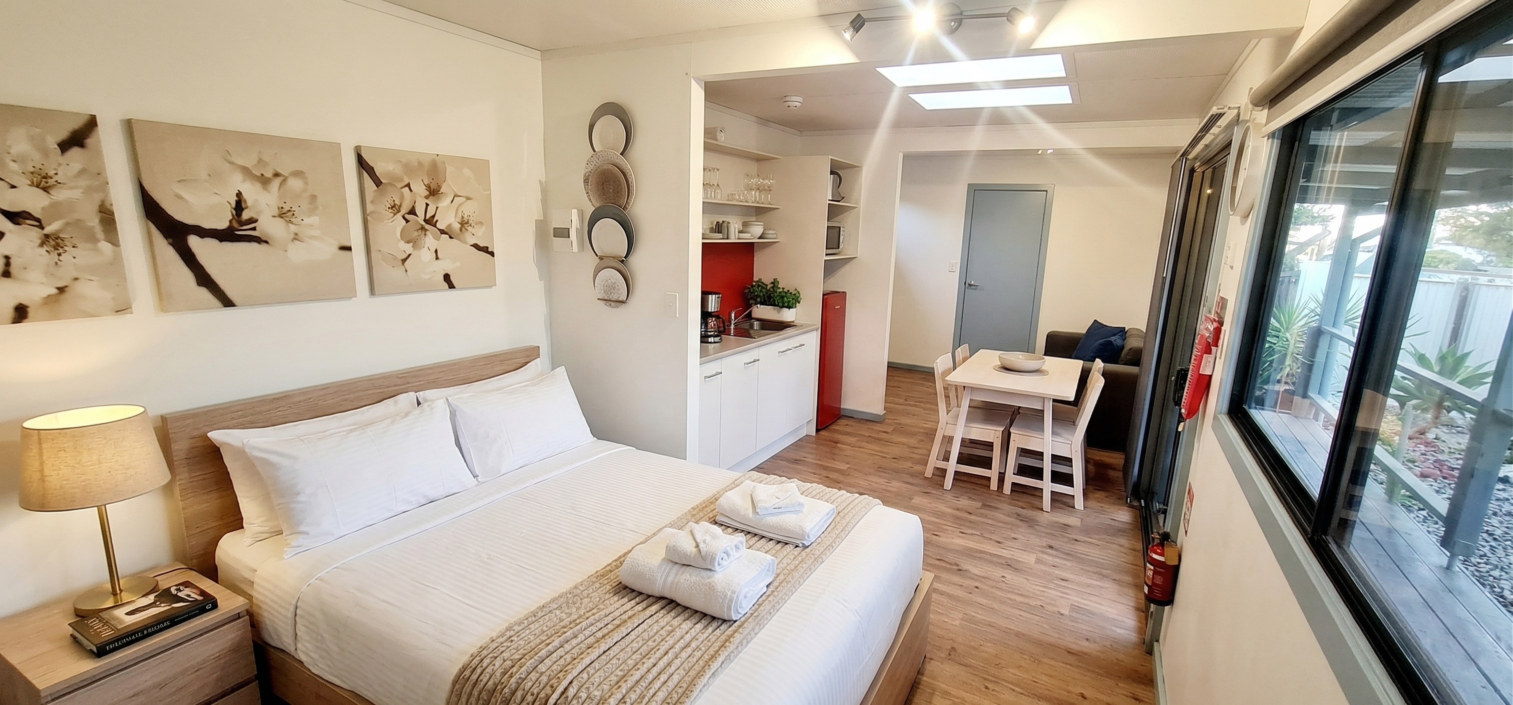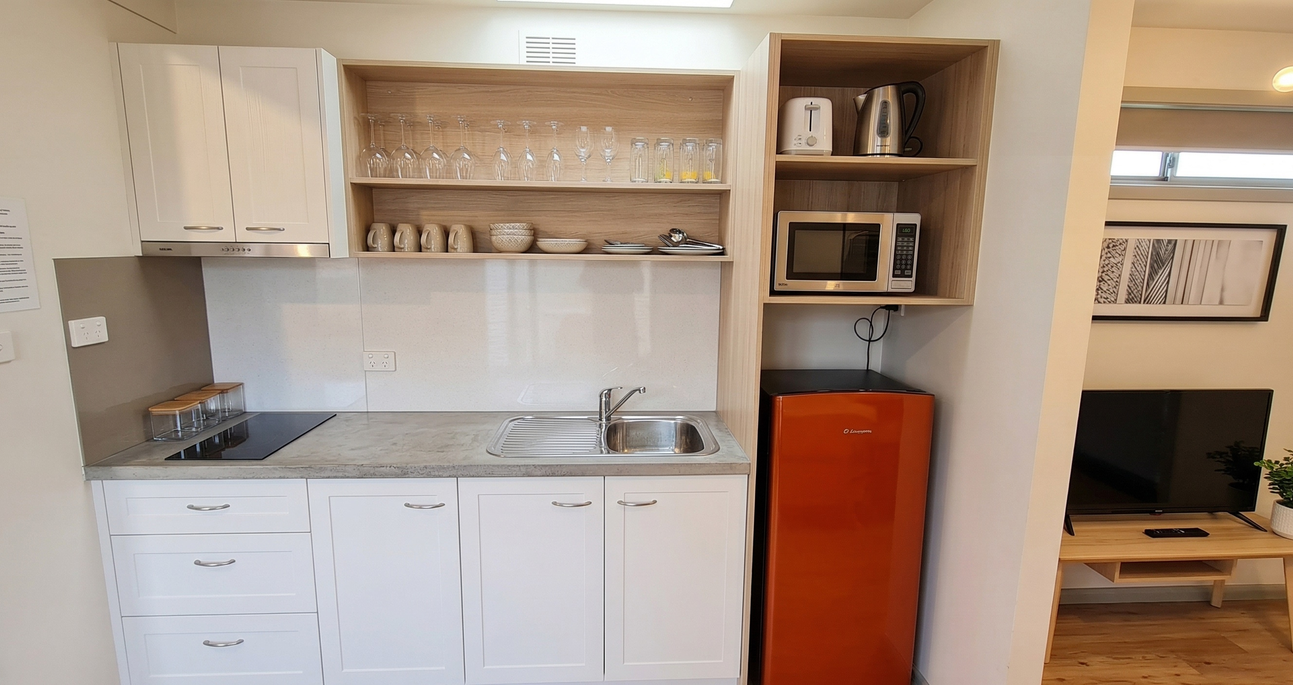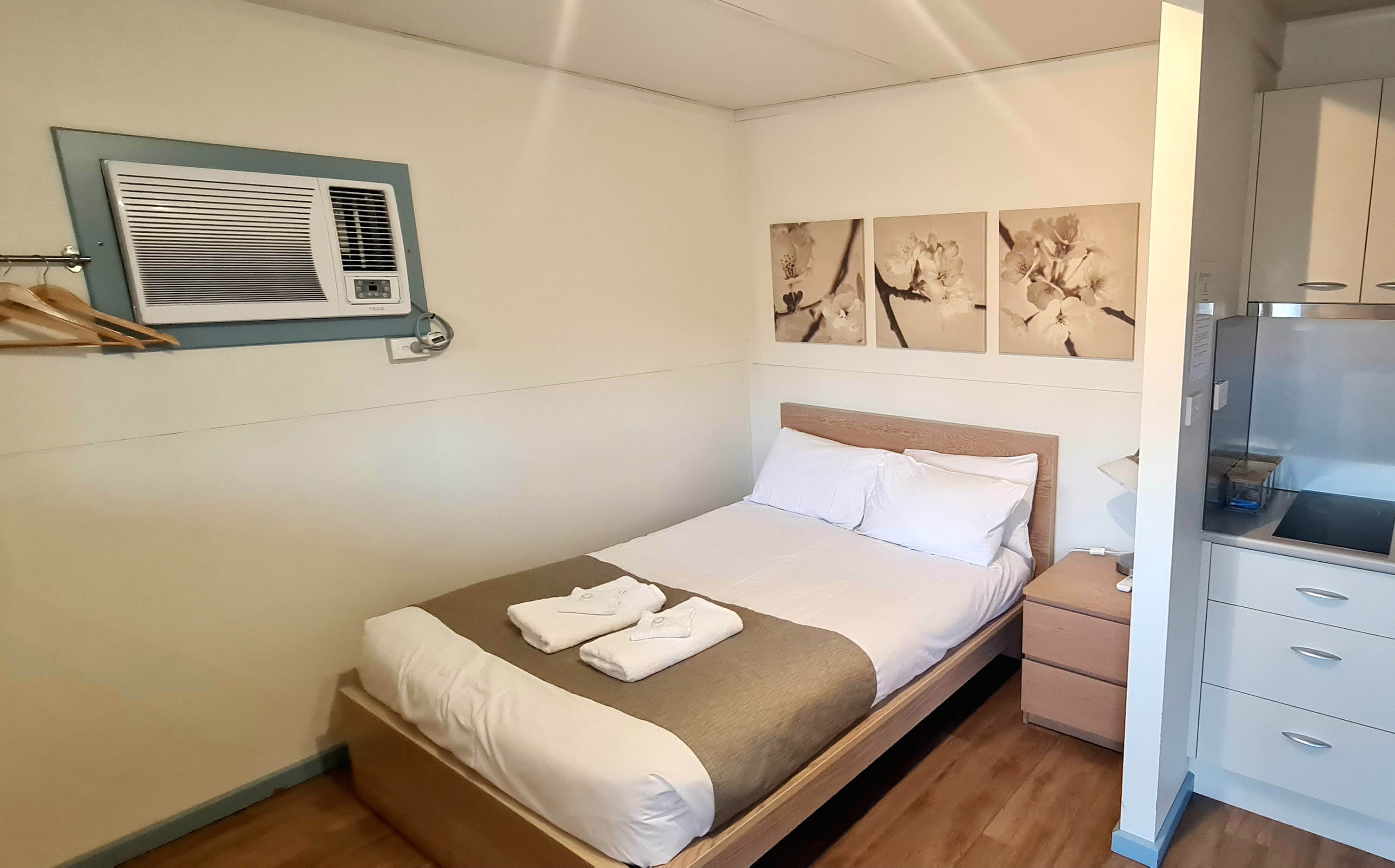 Perfect for a relaxing getaway, our Couples Cabins offer a comfortable studio-style layout designed just for two. Enjoy the ease of a well-equipped kitchenette, private bathroom, TV, and reverse-cycle air conditioning/heating to keep you comfortable year-round.
