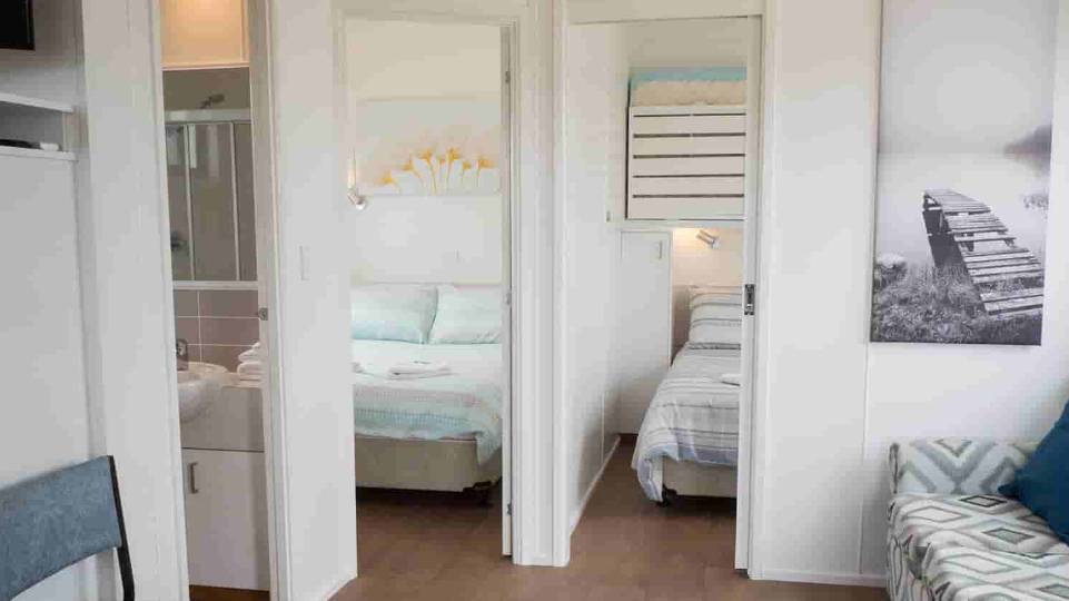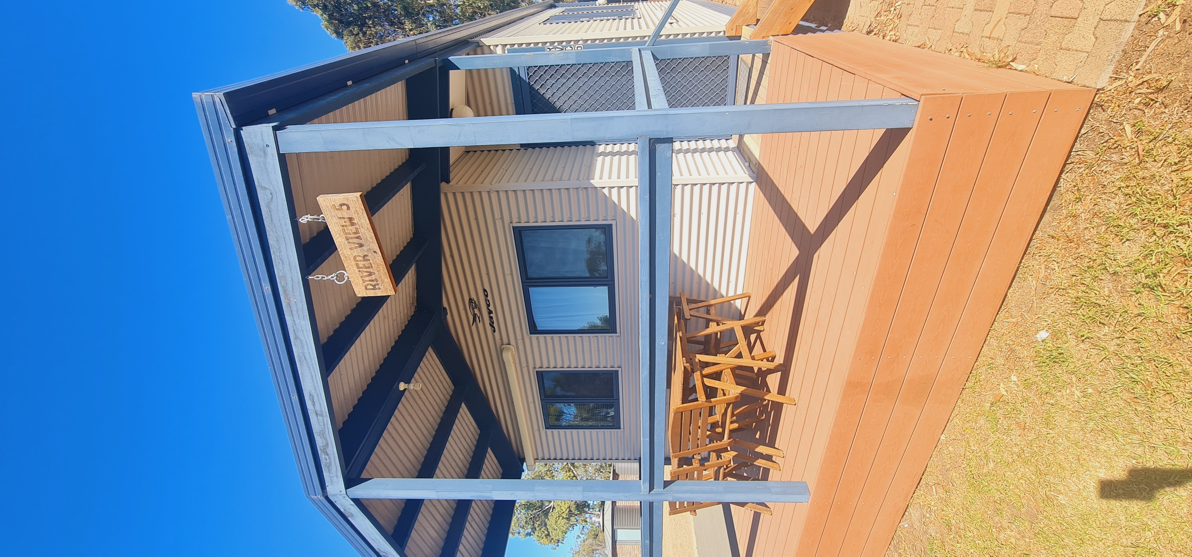 Our River View Cabins have 2 double bedrooms and are fully self-contained, ideal for 2 couples or a family. Sleep up to 5 in 2 doubles and a single fold down bed.