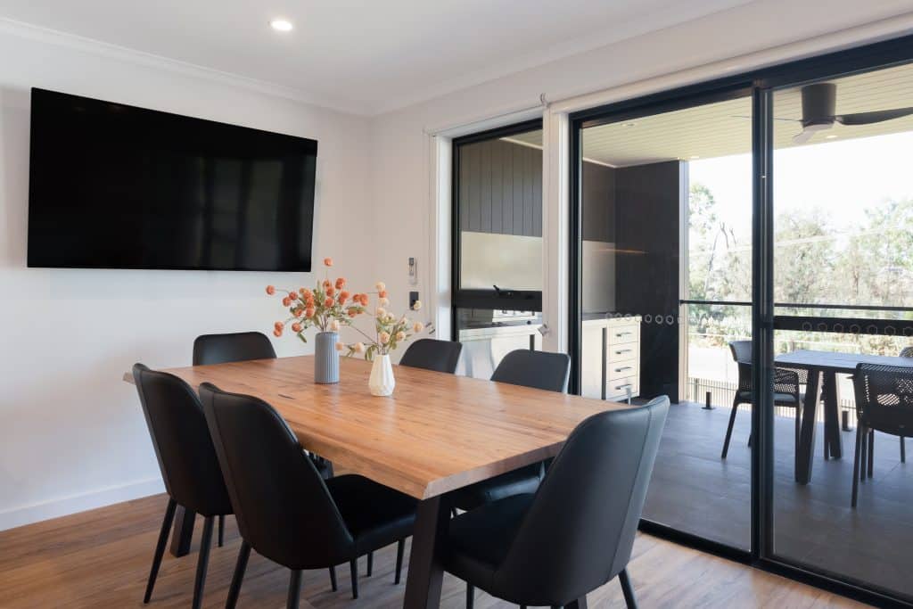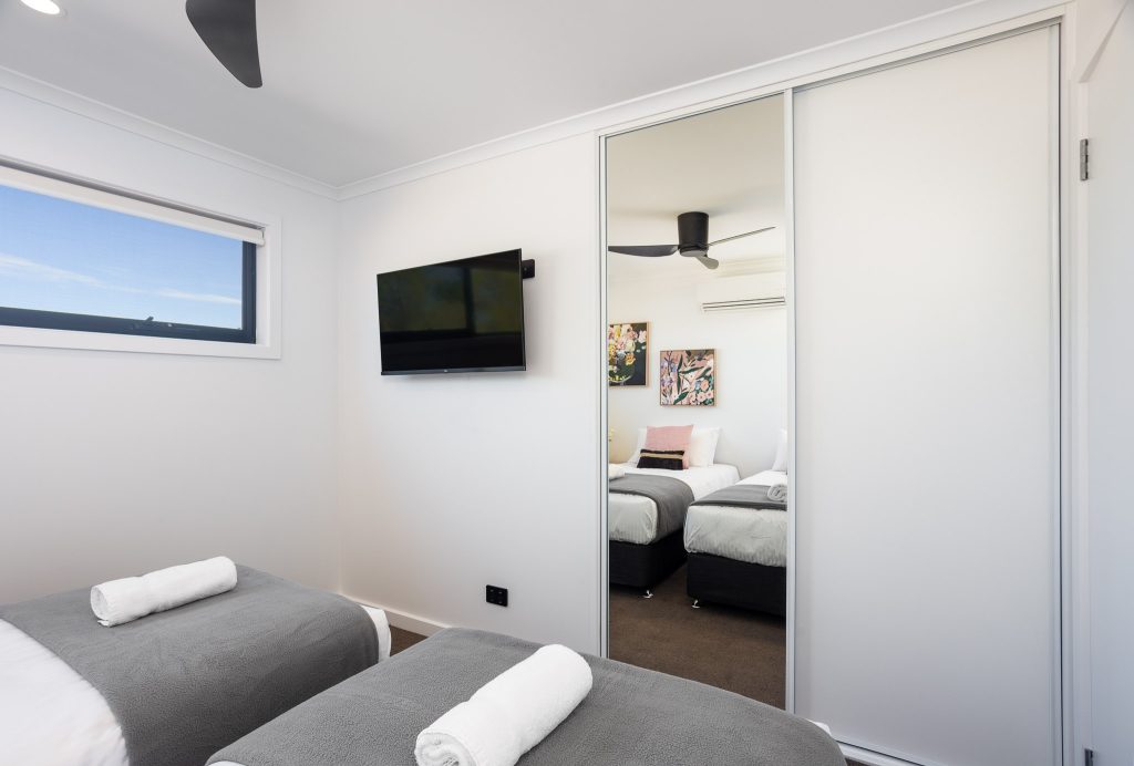 Fully self contained luxury 3 bedroom apartments overlooking the Murray River sleeps up to 6 people. Main room has a king bed with ensuite and second and third bedroom can be either a king bed or split into x2 single beds. All linen is provided so just pack up the kids for the perfect family getaway.