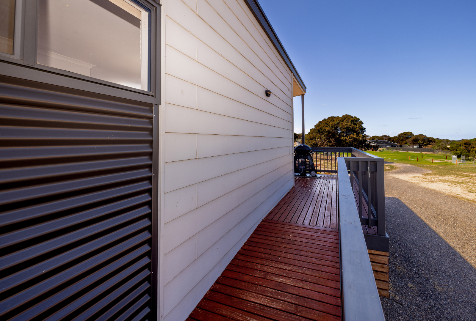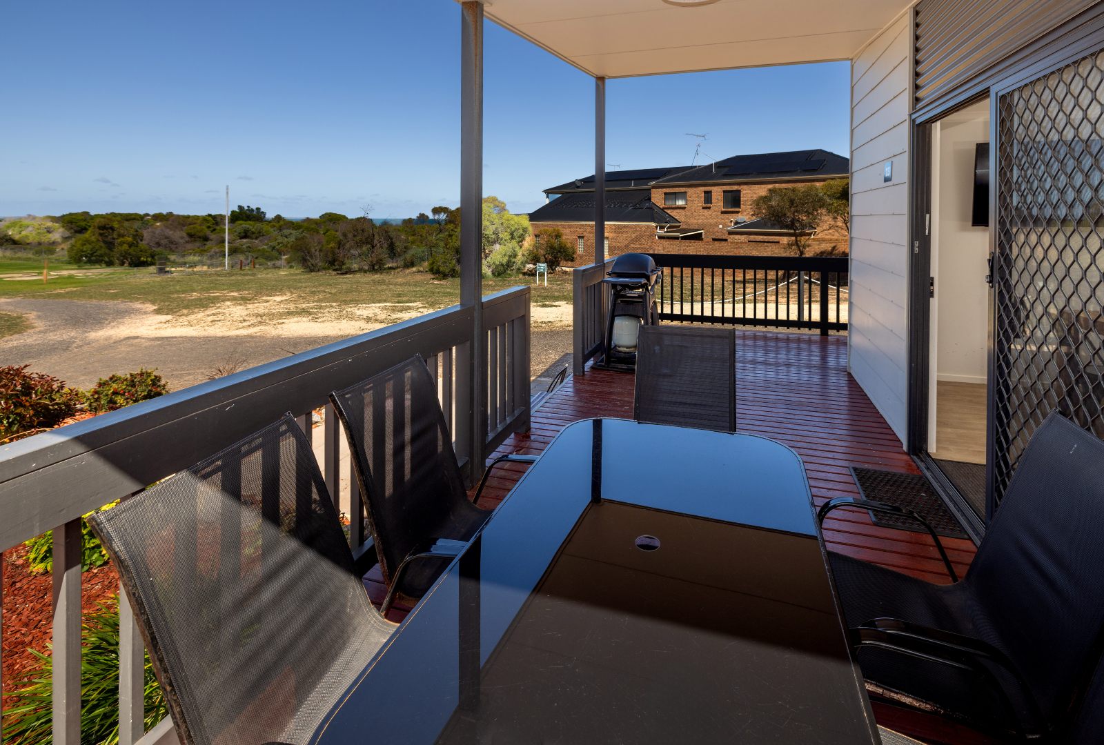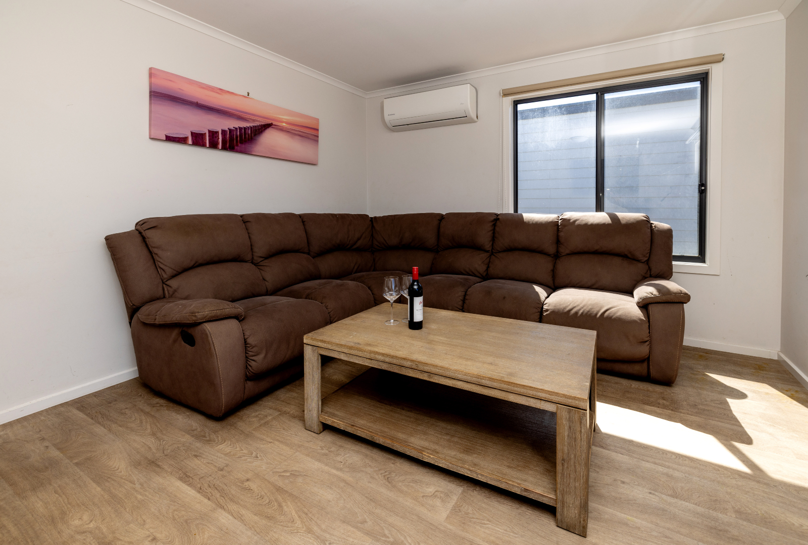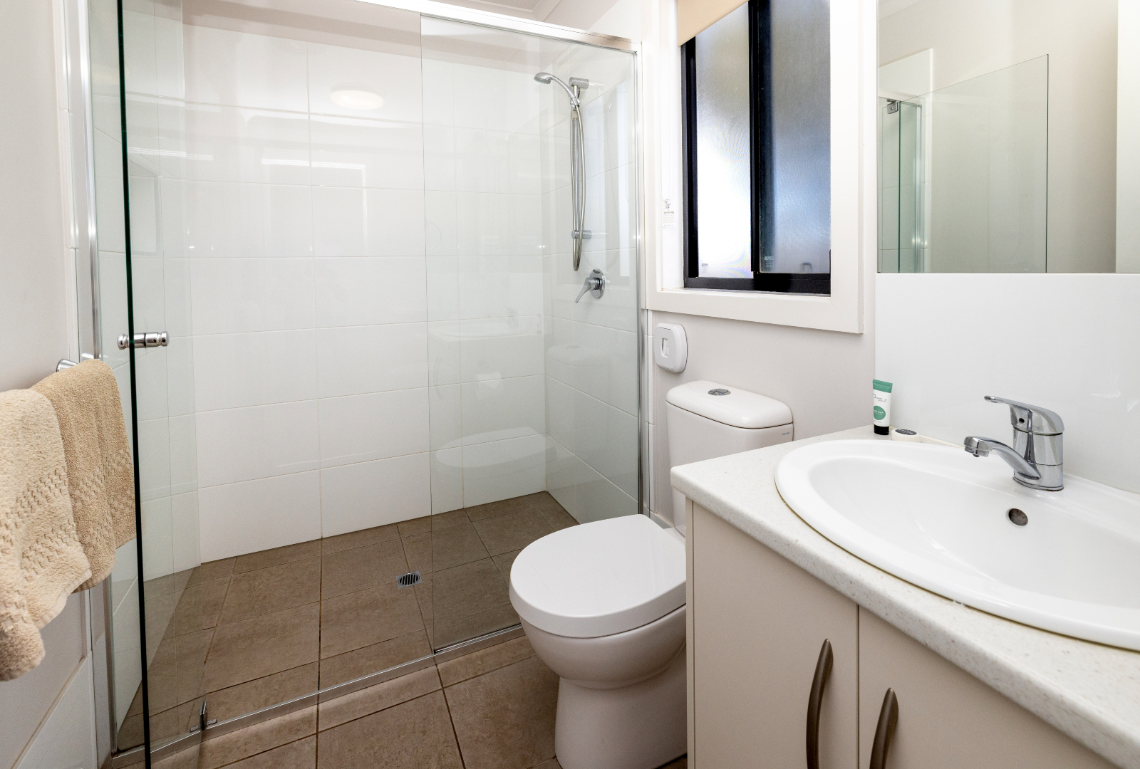 The main bedroom features a queen sized bed along with an ensuite bathroom, the second bedroom has another queen-sized bed and the third bedroom has two sets of bunk beds. Linen is included on all bed. This Villa includes its own BBQ on a large veranda. This villa is perfect for anyone requiring accessible facilities, it includes wide doorways and a large accessible bathroom with roll in shower, stainless steel handrails and a folding seat in the shower. The villa complies with the Australian Standard 1428.1-2009. Please notify us if you are bringing a dog. Additional charges apply.