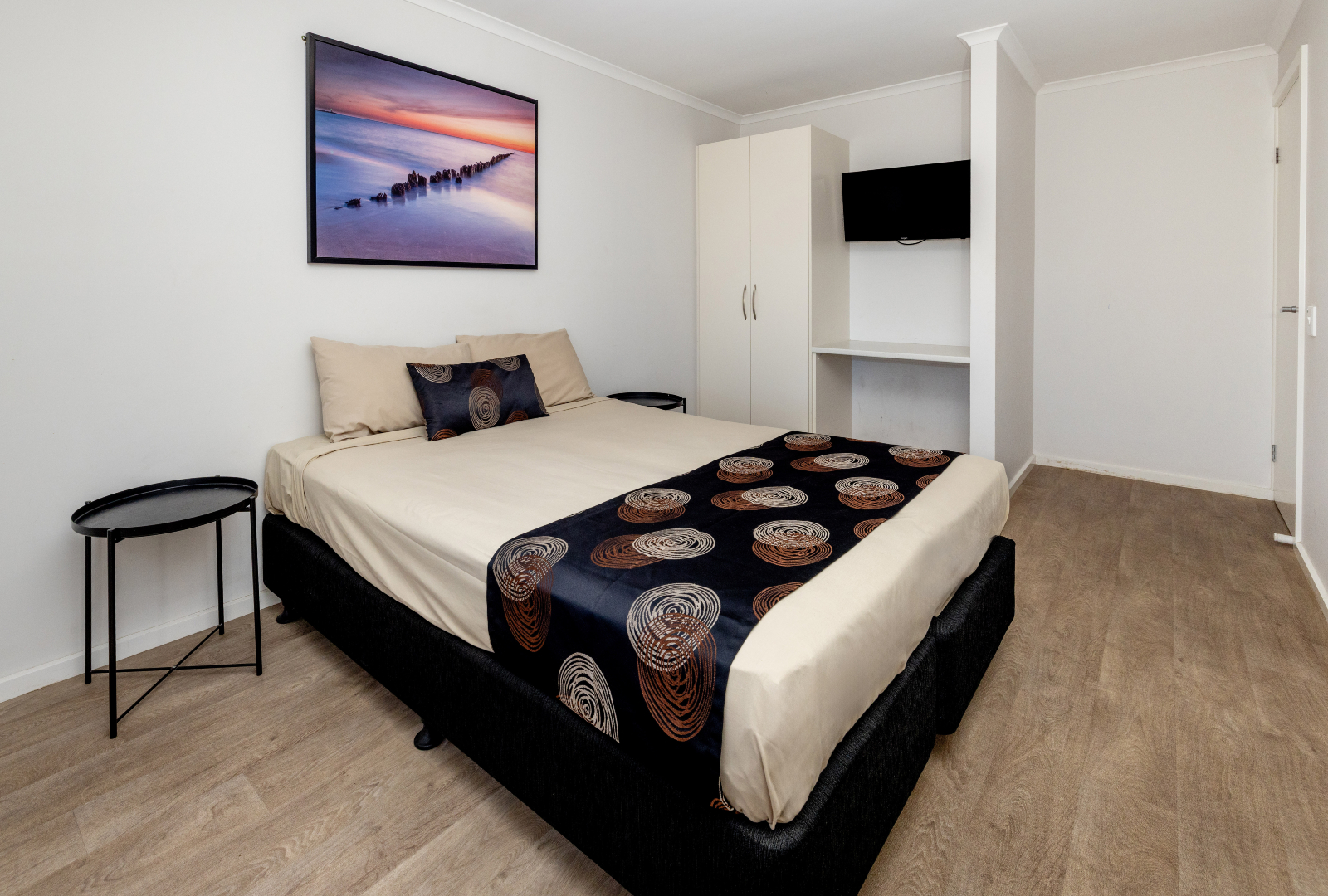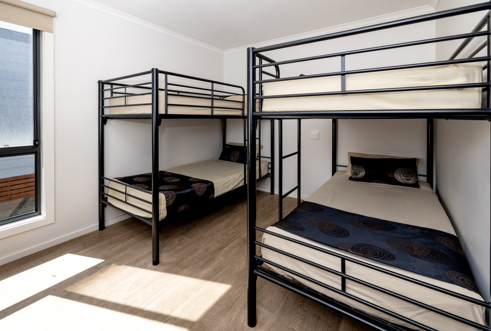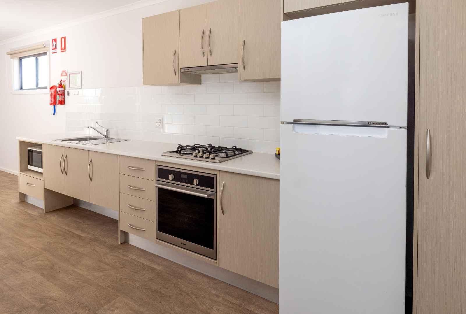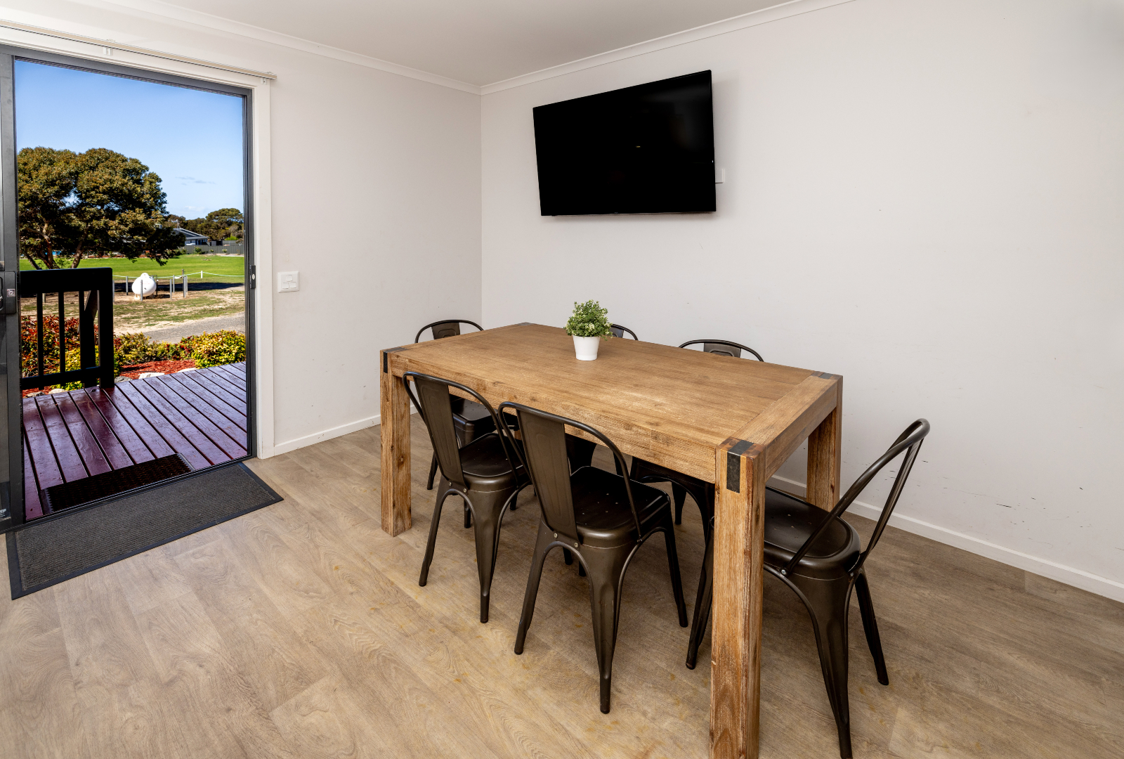 The main bedroom features a queen sized bed along with an ensuite bathroom, the second bedroom has another queen-sized bed and the third bedroom has two sets of bunk beds. Linen is included on all bed. This Villa includes its own BBQ on a large veranda. This villa is perfect for anyone requiring accessible facilities, it includes wide doorways and a large accessible bathroom with roll in shower, stainless steel handrails and a folding seat in the shower. The villa complies with the Australian Standard 1428.1-2009. Please notify us if you are bringing a dog. Additional charges apply.