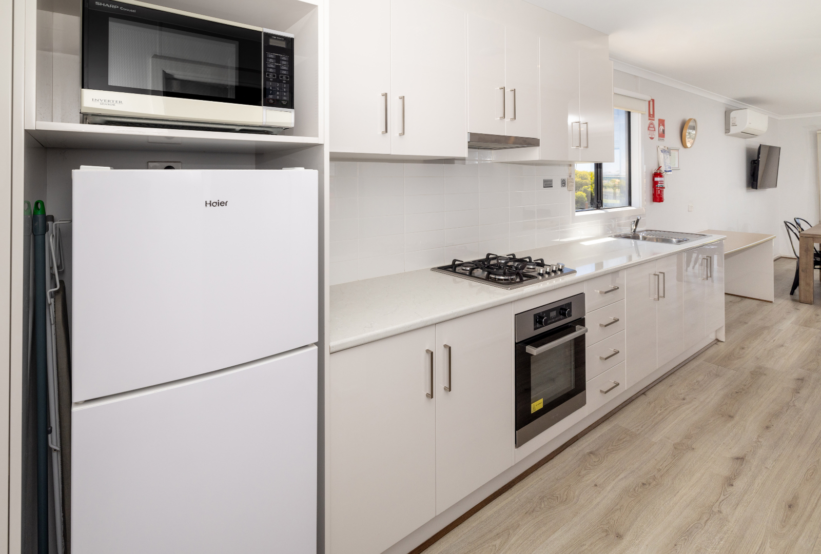 This spacious villa is also perfect for people requiring wheelchair-accessible facilities—it includes wide doorways and a large accessible bathroom with a roll-in shower, stainless steel handrails, and a folding seat in the shower. The villa complies with Australian Standard 1428.1-2009. We have selected dog-friendly cabin options available—please notify us if you are bringing a dog, as additional charges apply.