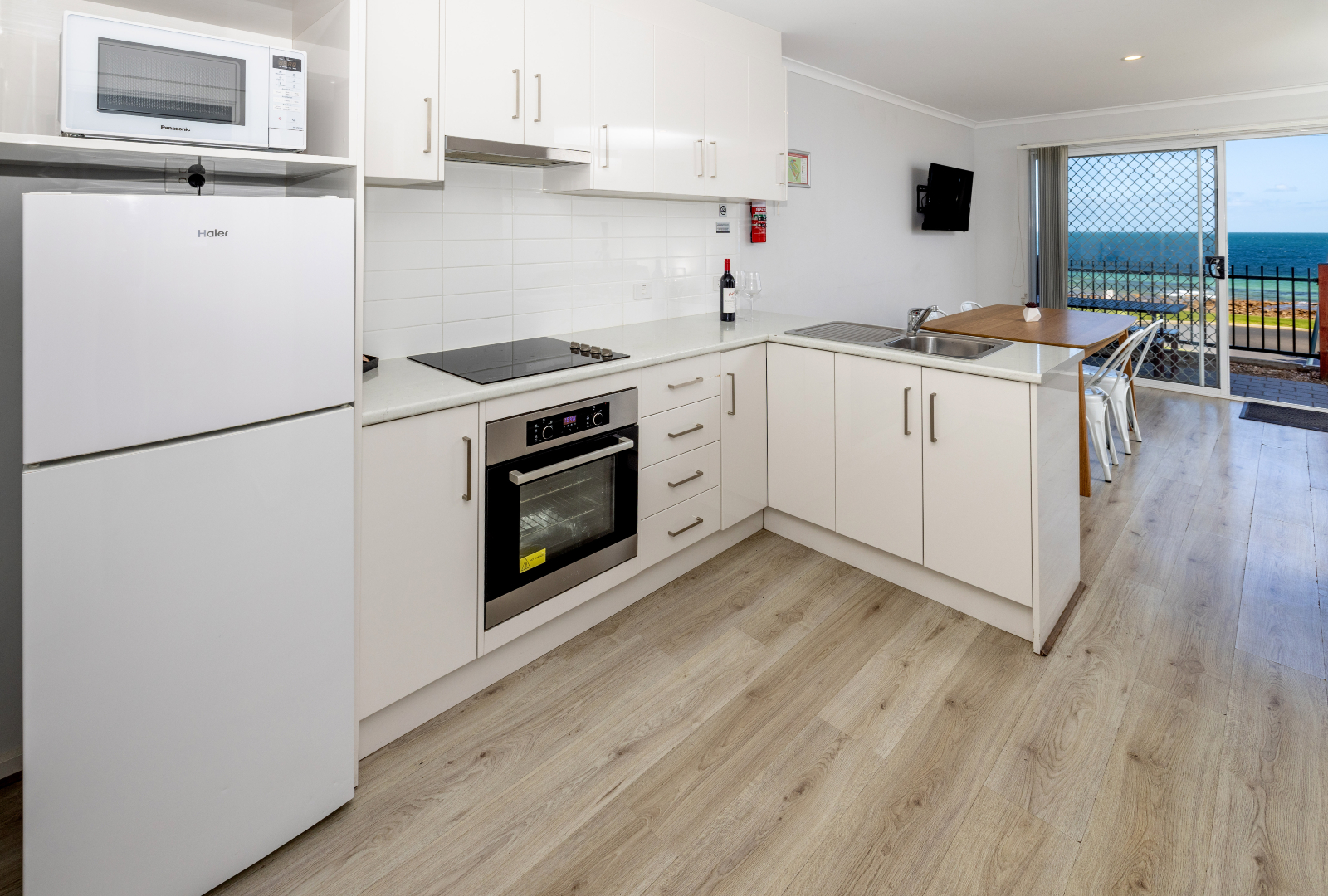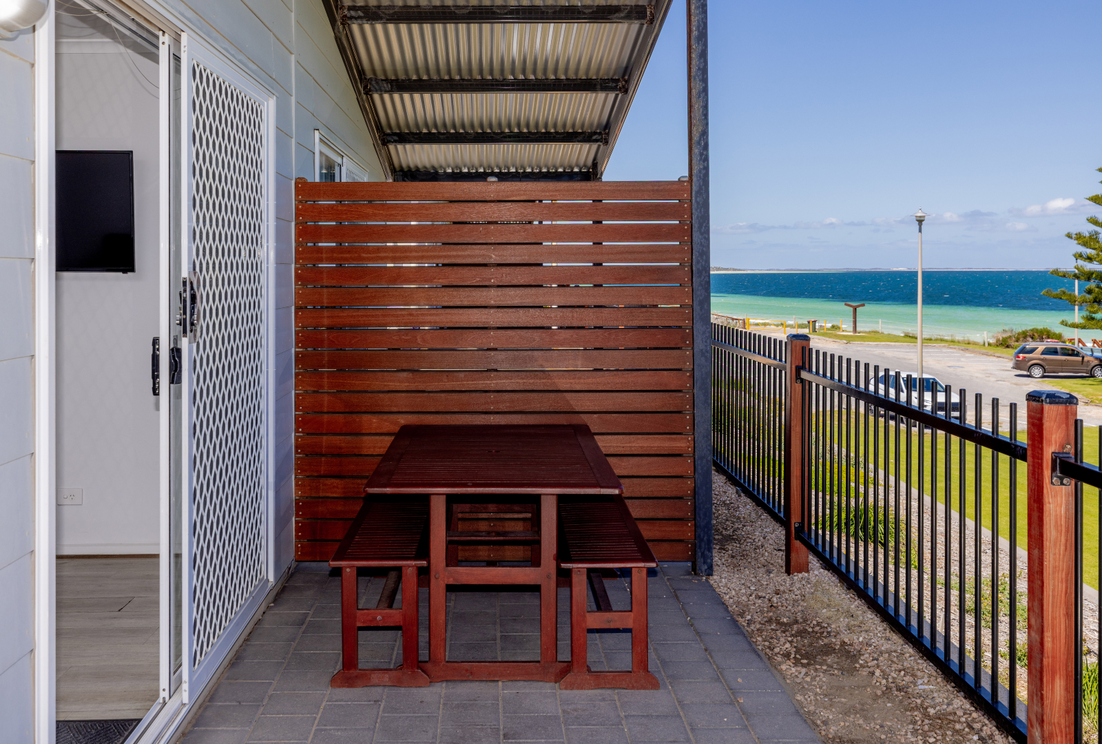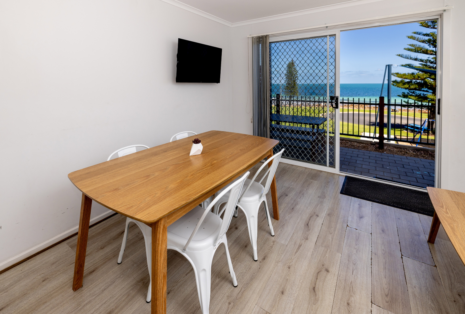 Enjoy stunning views of Port Hughes Beach from the comfort of your unit. Overlooking the Port Hughes Pier, our ocean view units are fantastic for those that love the sound of the ocean and the sea breeze. These spacious units sleep up to 5 people, featuring a queen bed in the main bedroom and 1 single bed and 1 set of bunk beds in the second bedroom, making them ideal for families and groups. With a modern and fully equipped kitchen, you’ll be able to whip up dinner with no hassle at all. There’s plenty of space to enjoy meals together as well, whether it’s inside using the dining room or out on the patio on the outdoor setting. The cabin is equipped with HD TV, High-Speed Internet, and streaming services, ensuring entertainment and connectivity during your stay.