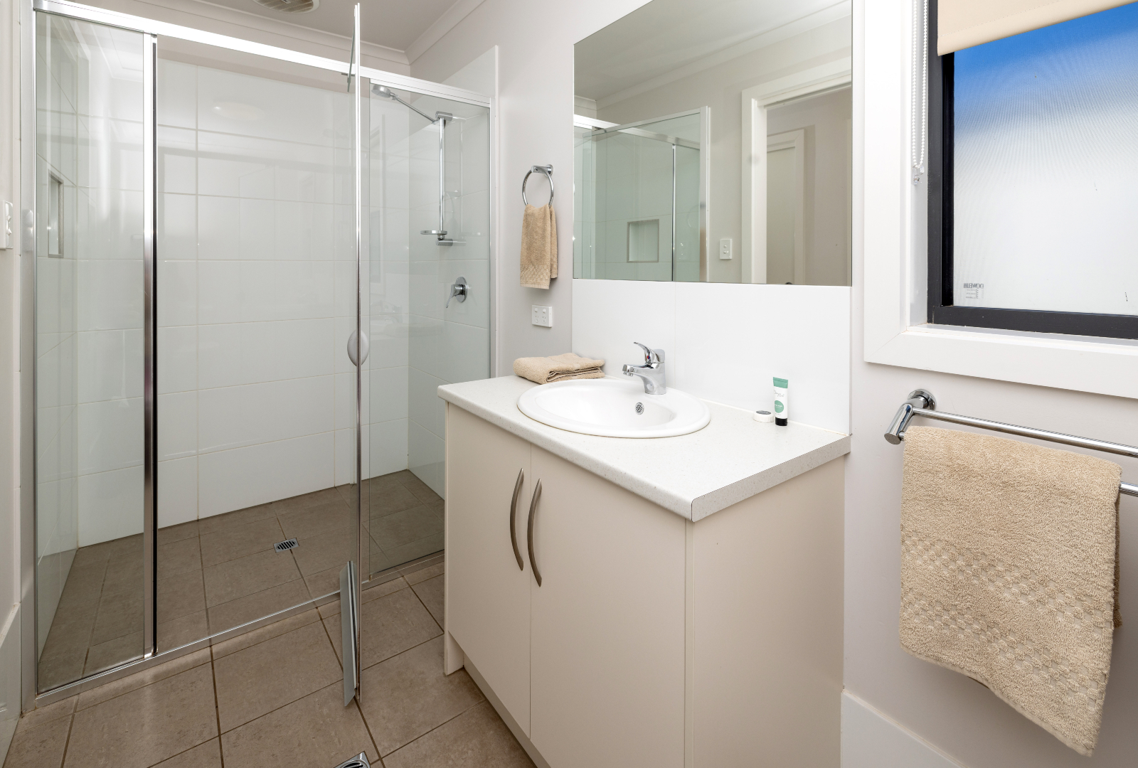 The main bedroom features a queen bed along with an ensuite bathroom, the second bedroom has another queen bed and the third bedroom has two sets of bunk beds. Linen is included on all beds.