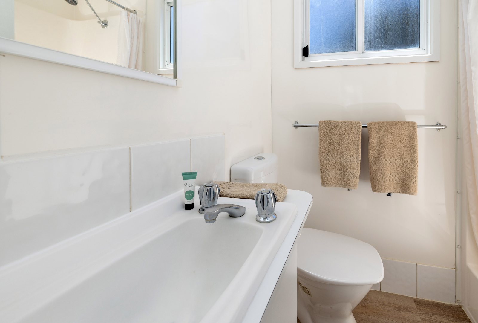 These two-bedroom cabins sleep up to five people with a double bed and a tribunk bed. Linen is supplied for all beds.