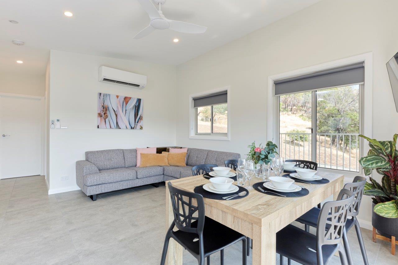 The practical kitchen has an electric cooktop, a microwave and a full size refrigerator. With its own contemporary ensuite bathroom, flat screen television, corner modular chaise, dining as well as a reverse cycle air-conditioner keeping you warm and toasty in winter or cool and fresh in summer.