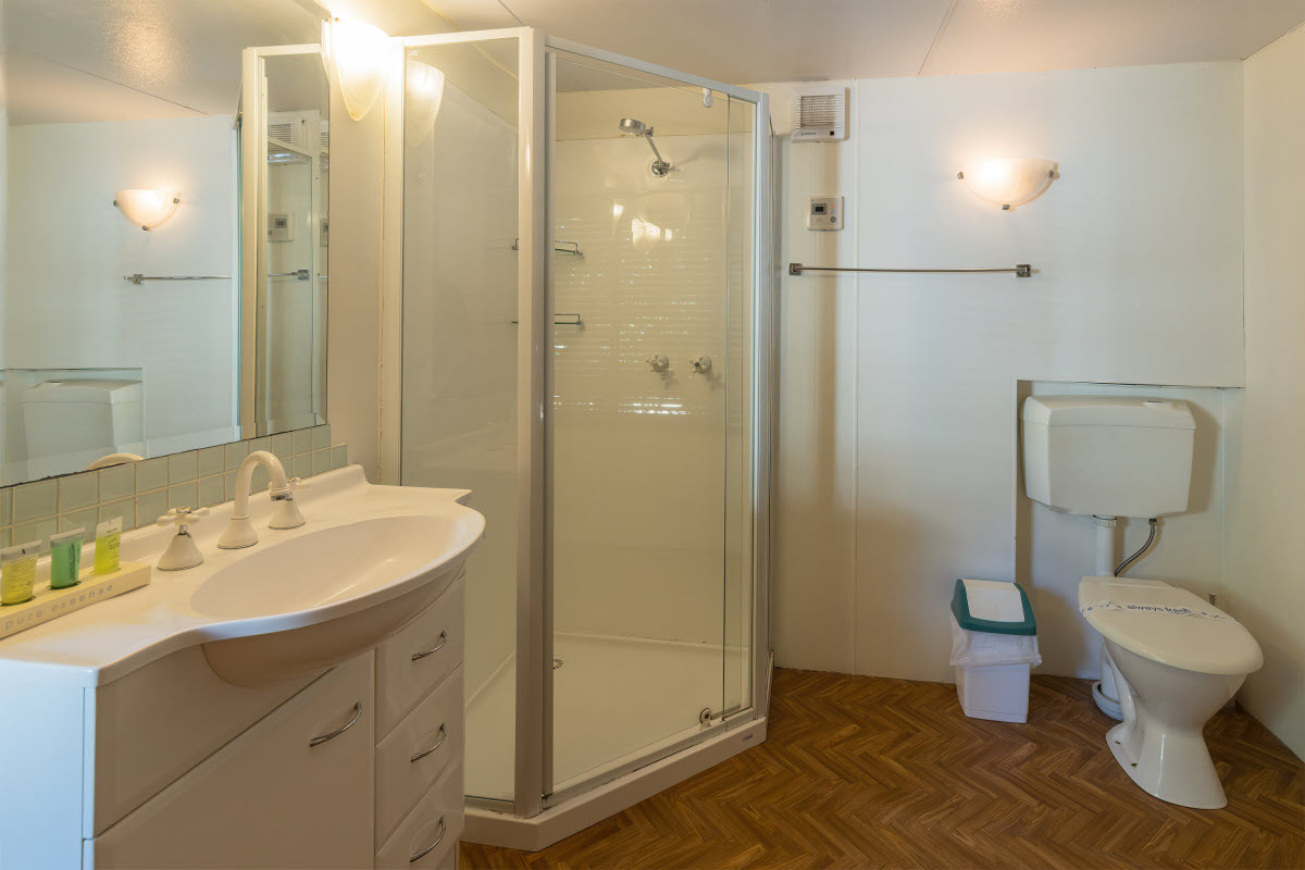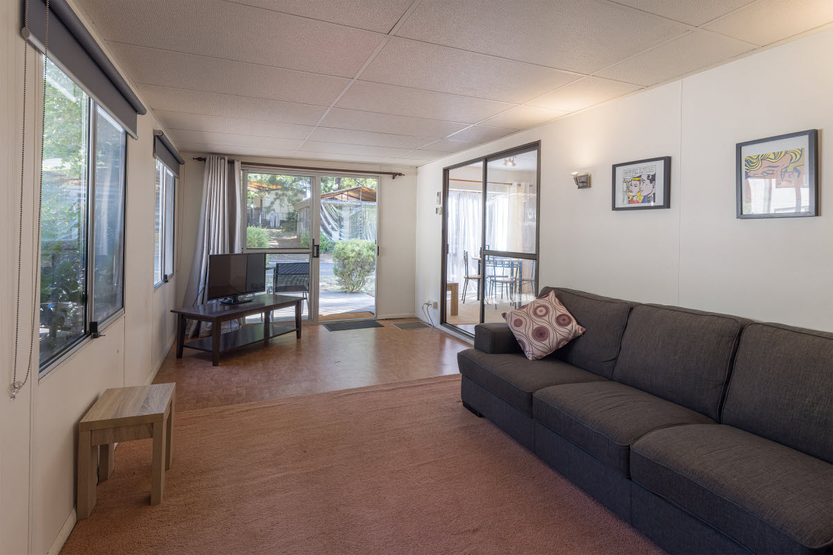 - All cabins have a self-contained kitchen/kitchenette with fridge, microwave and cooking facilities along with a colour television, heater, cutlery, crockery.