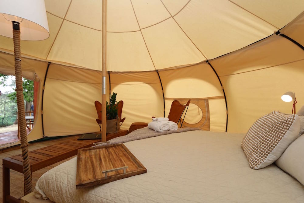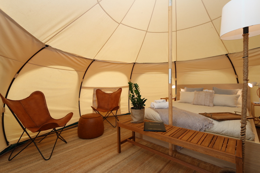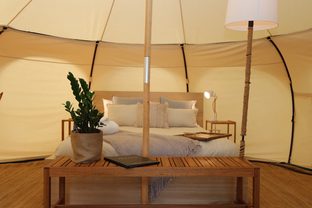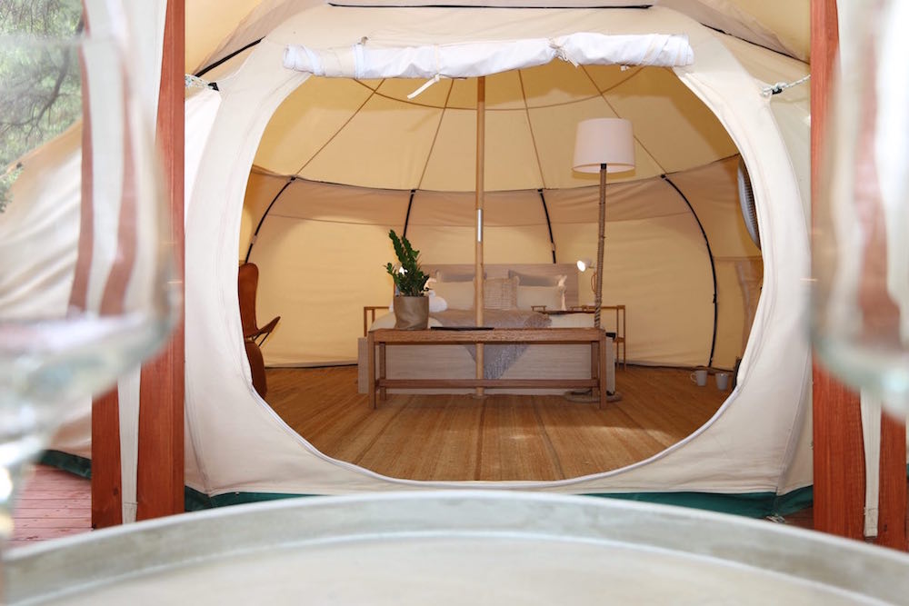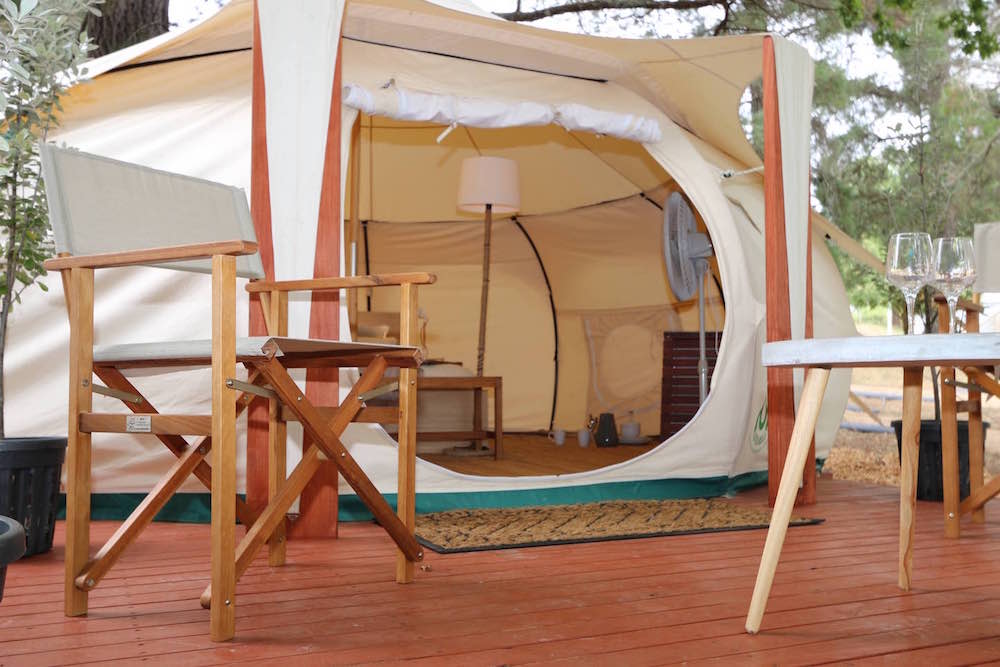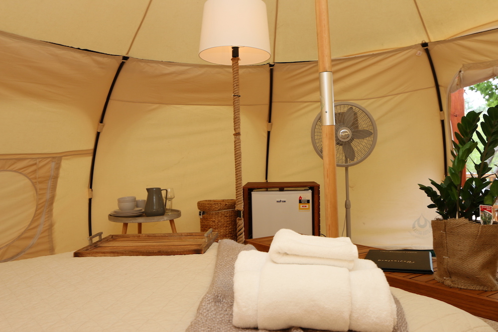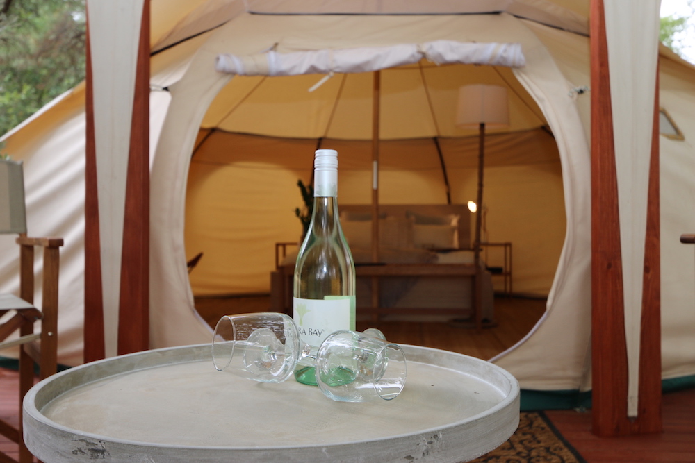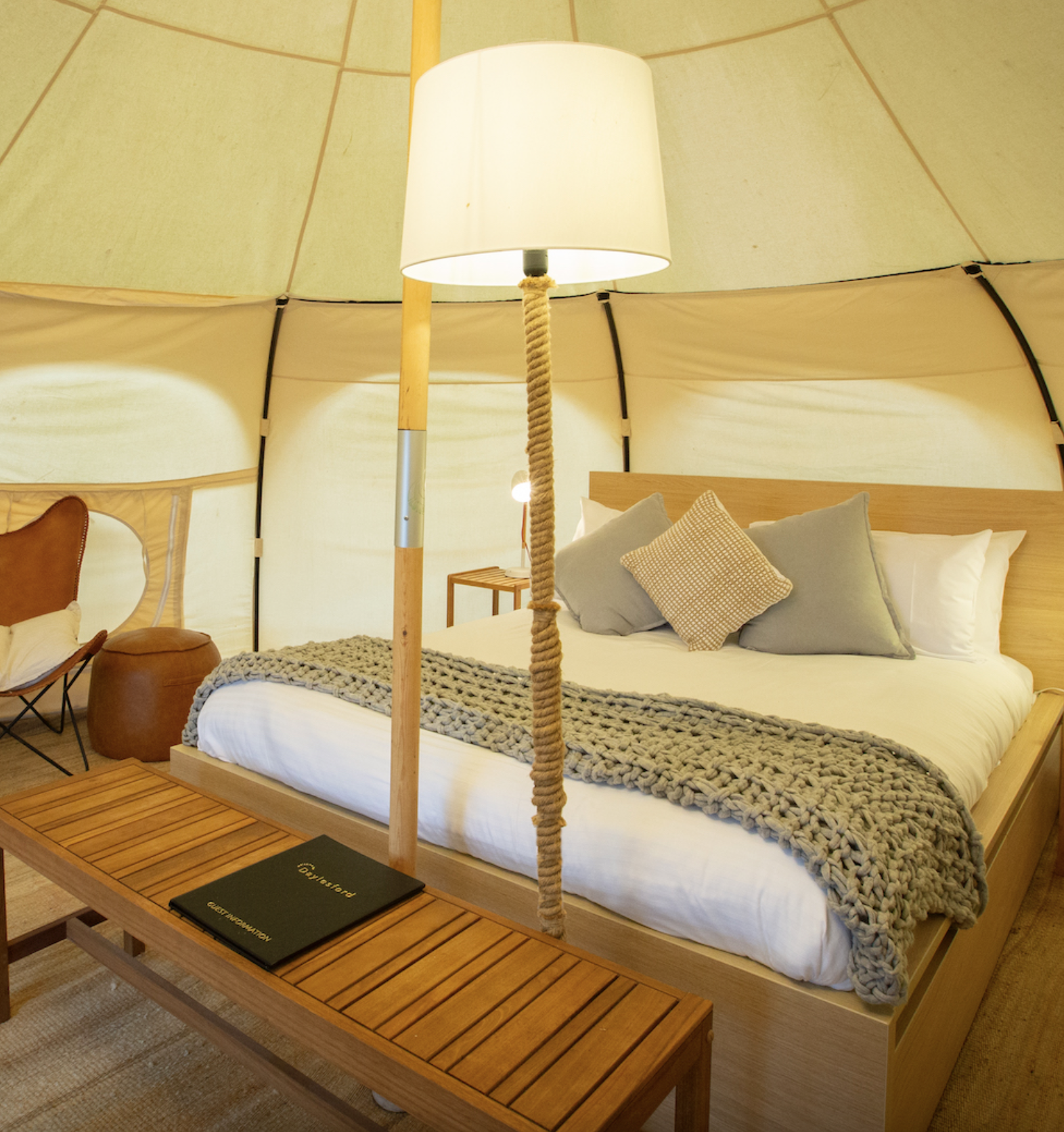 As a glamping guest, you enjoy your own private lockable tent and share a dedicated amenity ‘tee-pee’ including toilet, shower and vanity, with up to four other Glampers.