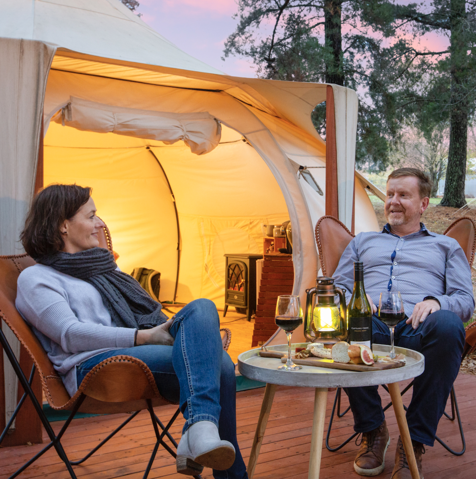 Relax in bohemian style in one of three luxuriously appointed belle style tents, each with their own unique décor, and enjoy the convenience of our amenities within our tranquil parkland environment.