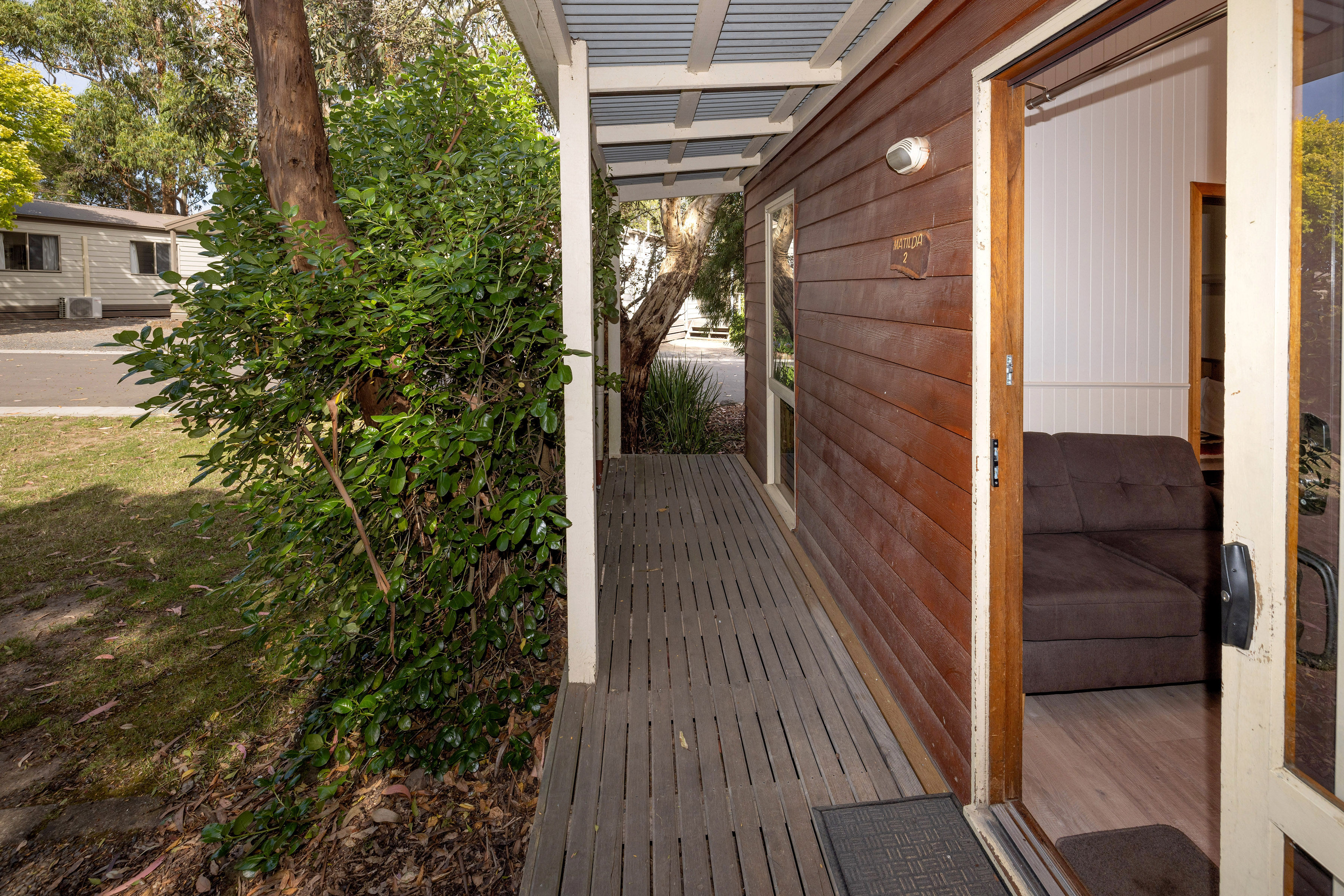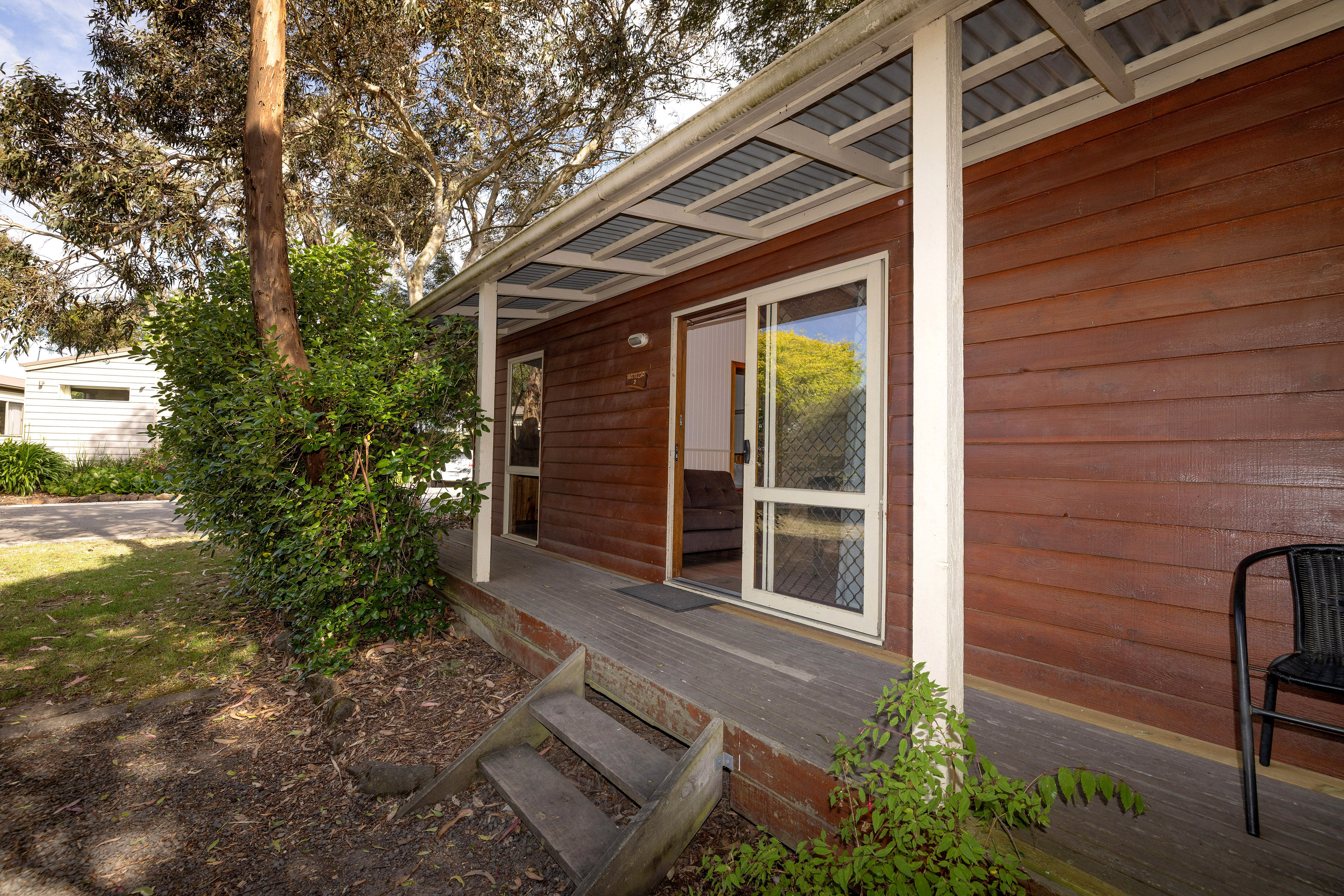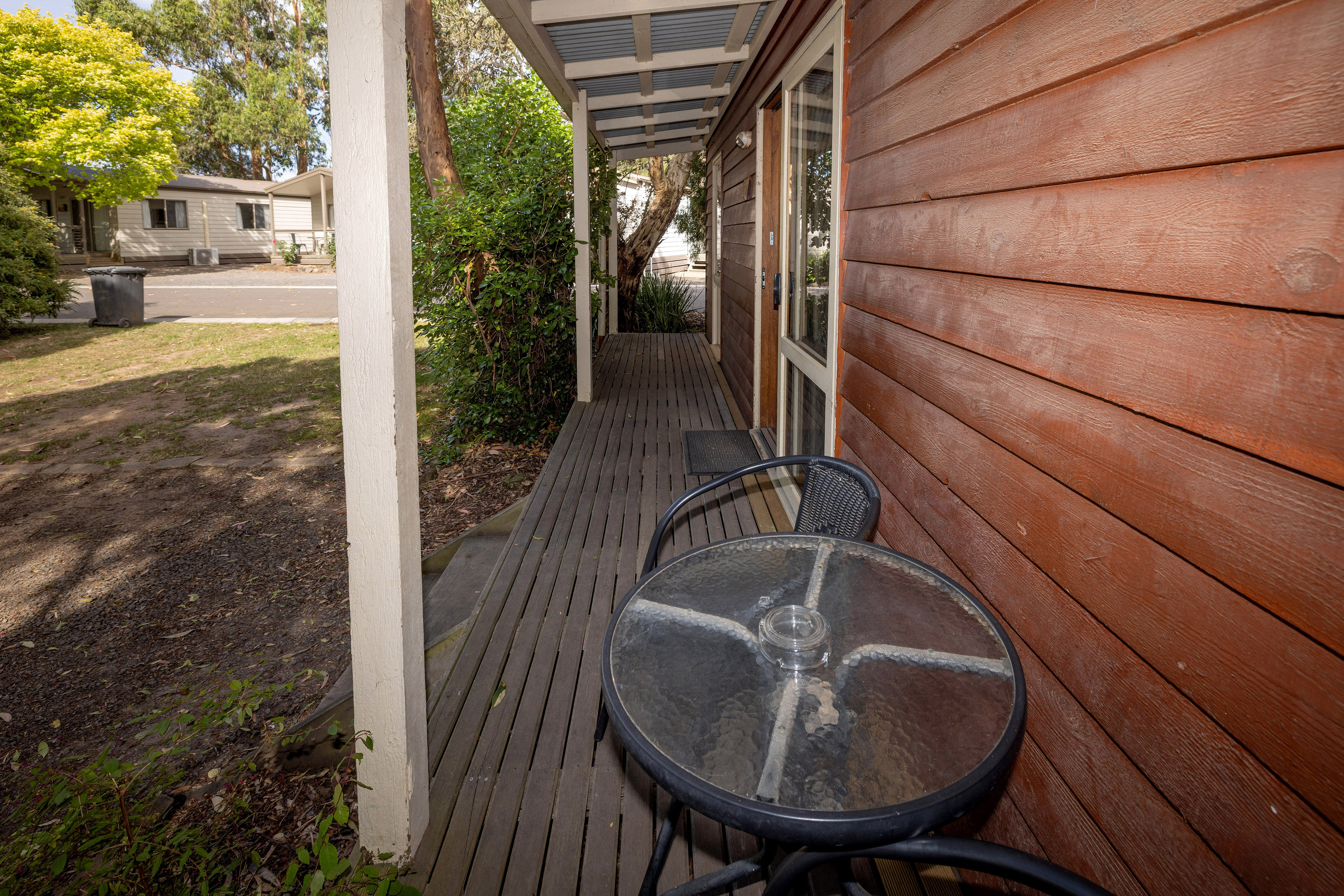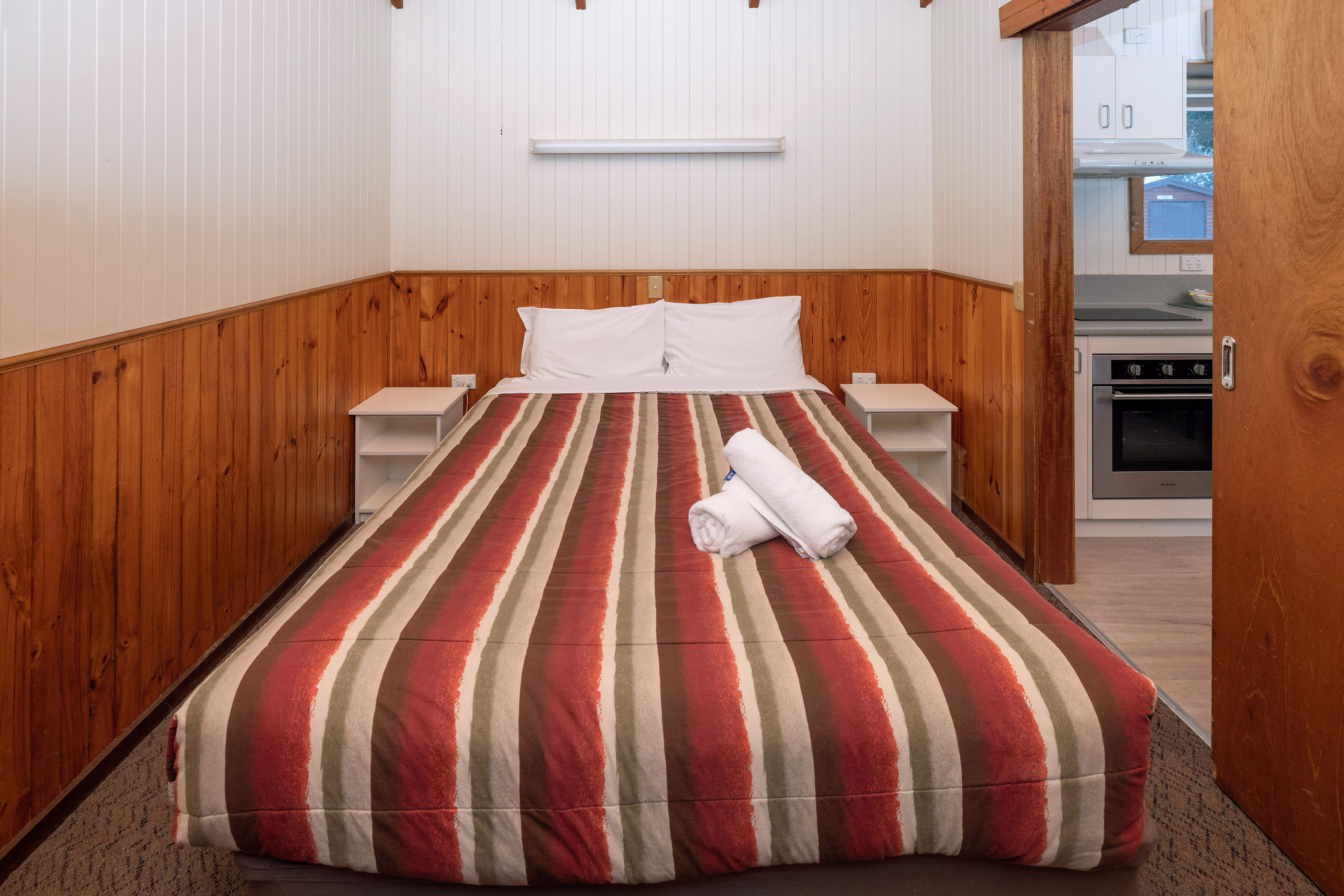 A fully equipped kitchen with cooking facilities including an electric bench top, cooker/grill, microwave and full-size refrigerator. Lounge/dining area offers a two seater sofa or two chairs, television, DVD player, reverse cycle air-conditioning and bathroom. Linen hire is available at $16 per bed for the stay.