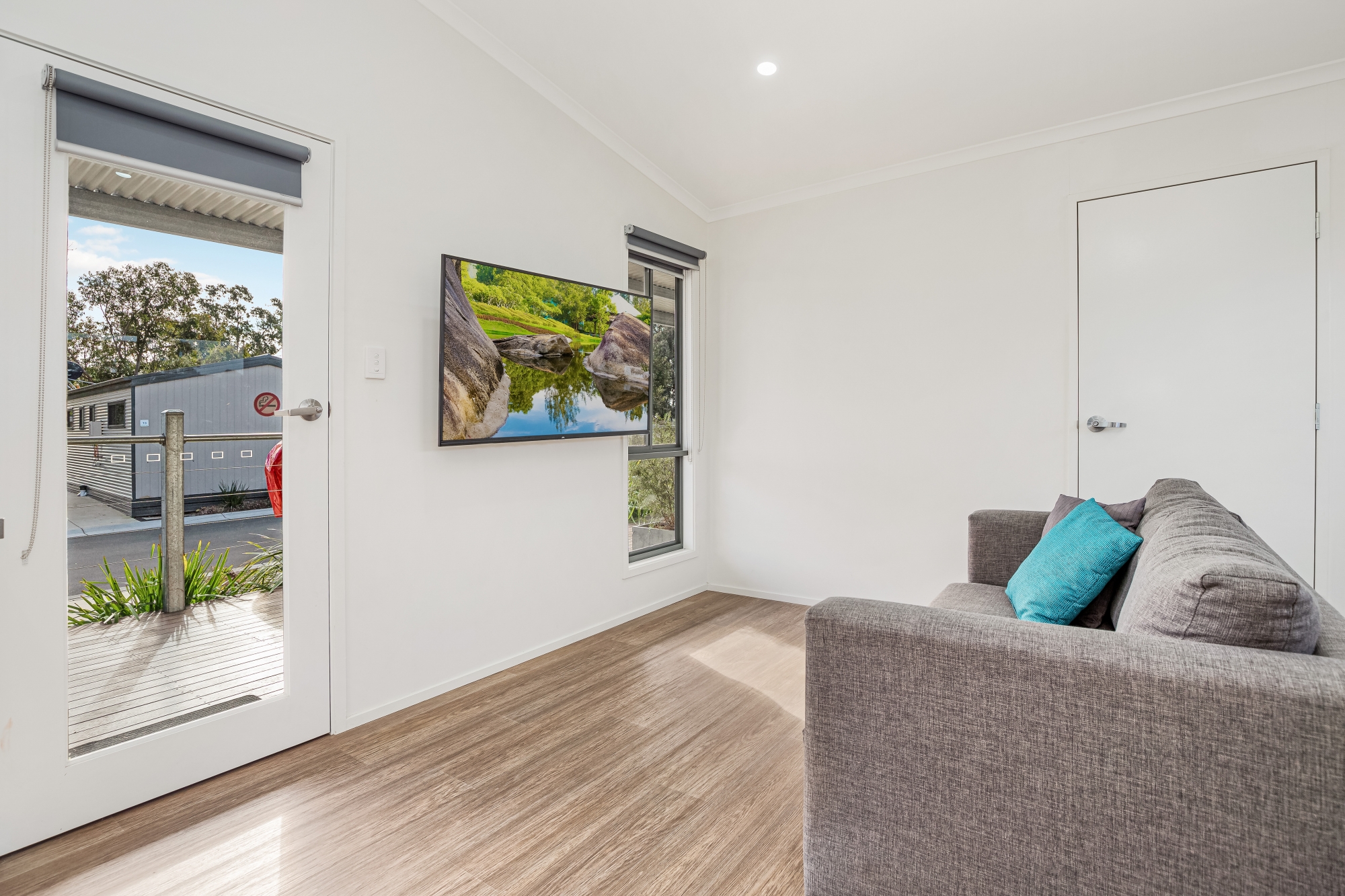 Our Studio Cabins have a queen bed, kitchenette, 50 inch TV, sofa couch & ensuite. Linen, pillow & towels are provided. When booking the 2 rooms you are able to open up the adjoining doors to allow access inside.