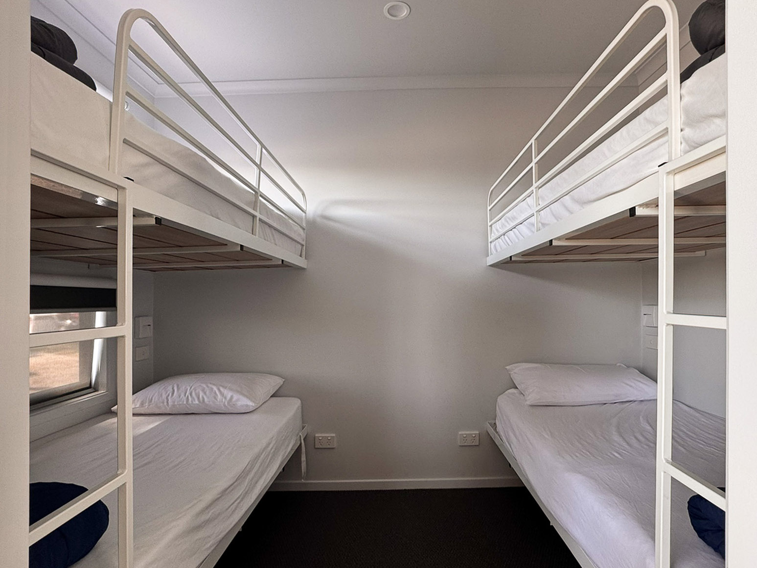 Bunk Beds: Please be advised: Work Law Health & Safety state that operators must comply with the Australian Standard AS/NZS 4220:2003 “Children under the age of 9 years are not permitted to use the top bunk, children must not play on top bunk”. Please take this into consideration when making your booking.