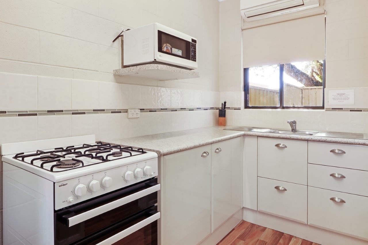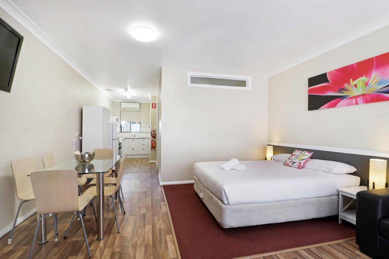 Enjoy our spacious motel-style accommodation! It features a comfy queen bed and a separate bunk room with two sets of bunks. We provide bed linen for all beds, except the top bunks. You'll love the fully equipped kitchen, dining area, and a full ensuite. For entertainment, there's a 42" LCD TV, DVD player, and an iPod/iPhone dock. Plus, stay cool with split system air conditioning!