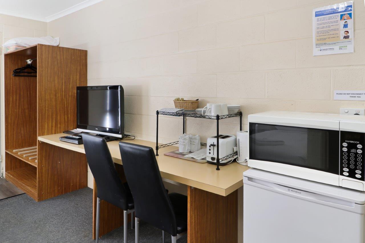 Enjoy our comfy motel-style accommodation featuring a queen bed and a single bed. You’ll love the ensuite, kitchenette with microwave and toaster, tea and coffee supplies, a 32" LCD TV, iPod/iPhone dock, and split system air conditioning!