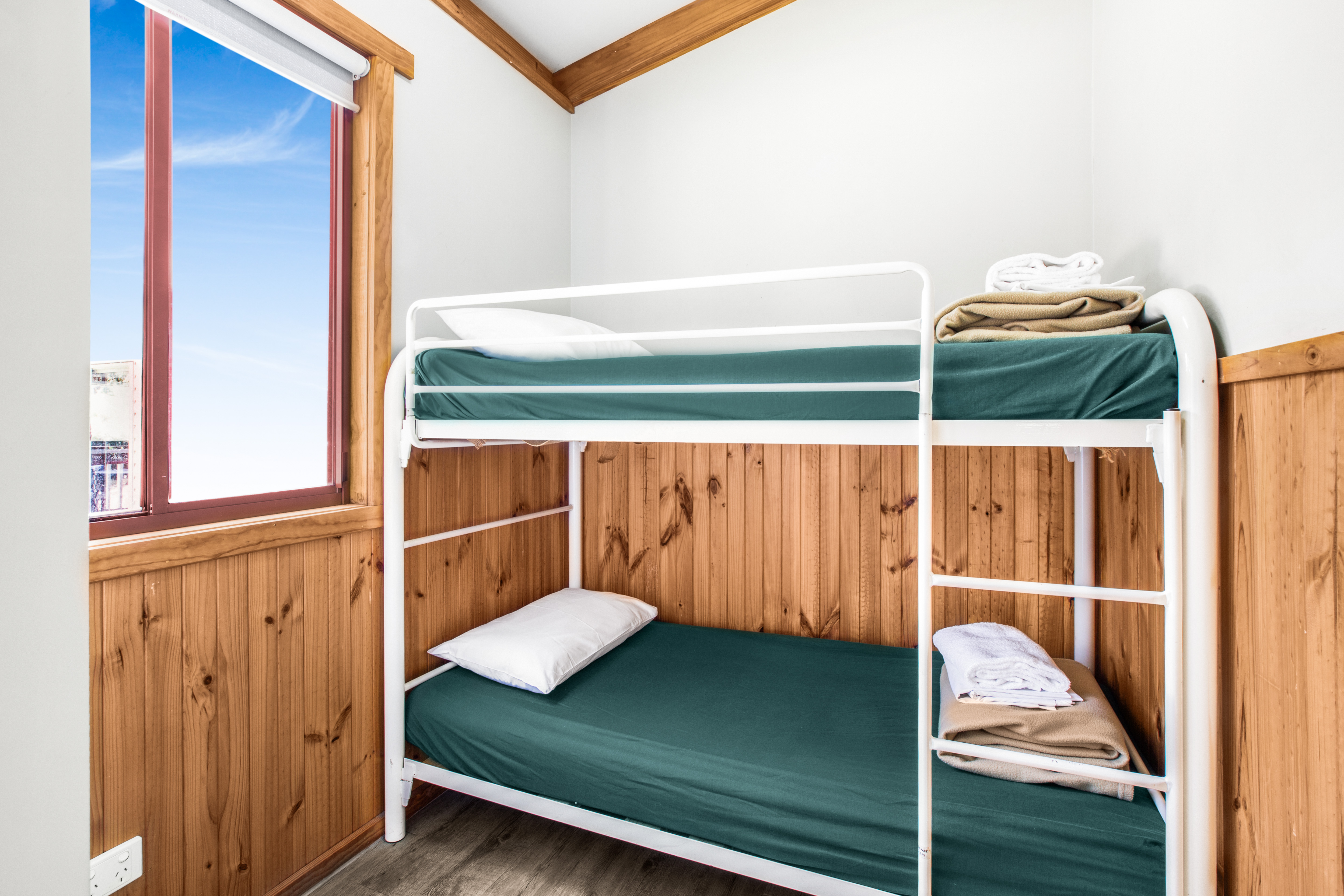 The open-plan cabin has a self-contained kitchen including a fridge, microwave, stovetop and plenty of crockery and cutlery with a seperate dining area, and a TV in the living area. The bathroom in the cabin includes a shower, toilet and vanity. The cabin is air-conditioned for your comfort.