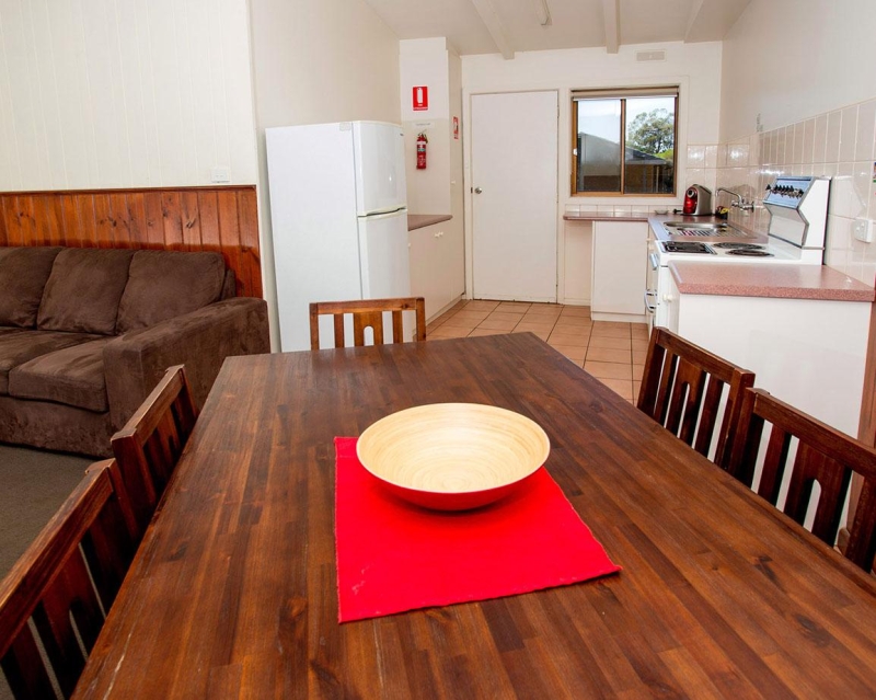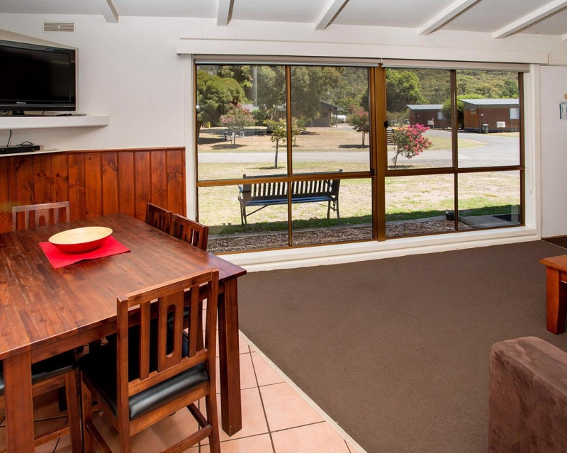Comfortable two bedroom cabin sleeping up to 4. Two queens. Featuring air-conditioning; full kitchen including oven, fridge and microwave; bathroom; dining and lounge area; TV.