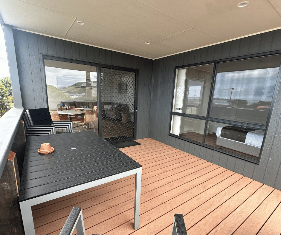 At the heart of the cabin is a spacious open-plan living and dining area, thoughtfully laid out to allow easy movement throughout. This space opens onto a large deck with outdoor dining and views, offering plenty of room to relax, entertain or simply enjoy the surroundings.