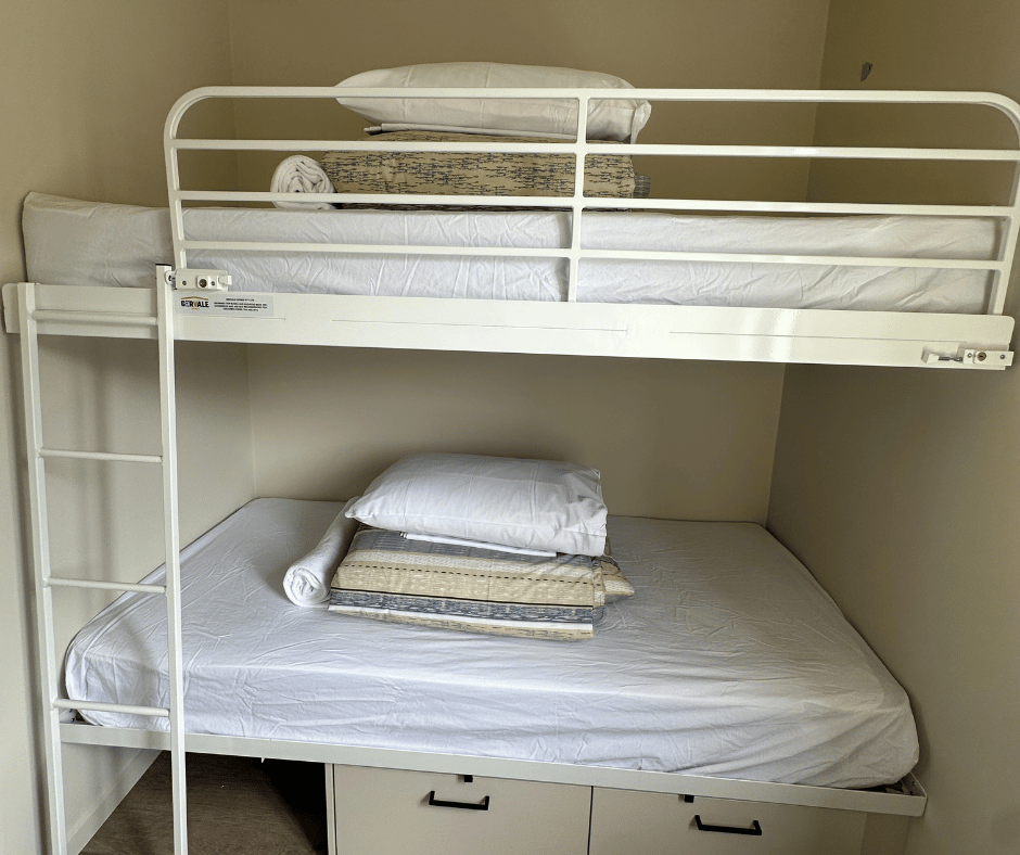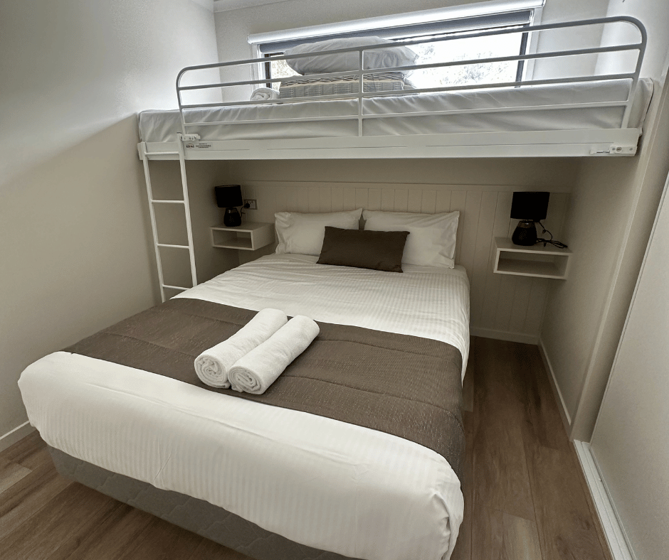 - Australian standards relate to the use of bunk beds and state that “Children under the age of 9 years are not permitted to sleep in the top bunk”, and “Children must not play on the top bunk”. Please take this into consideration when making a booking.