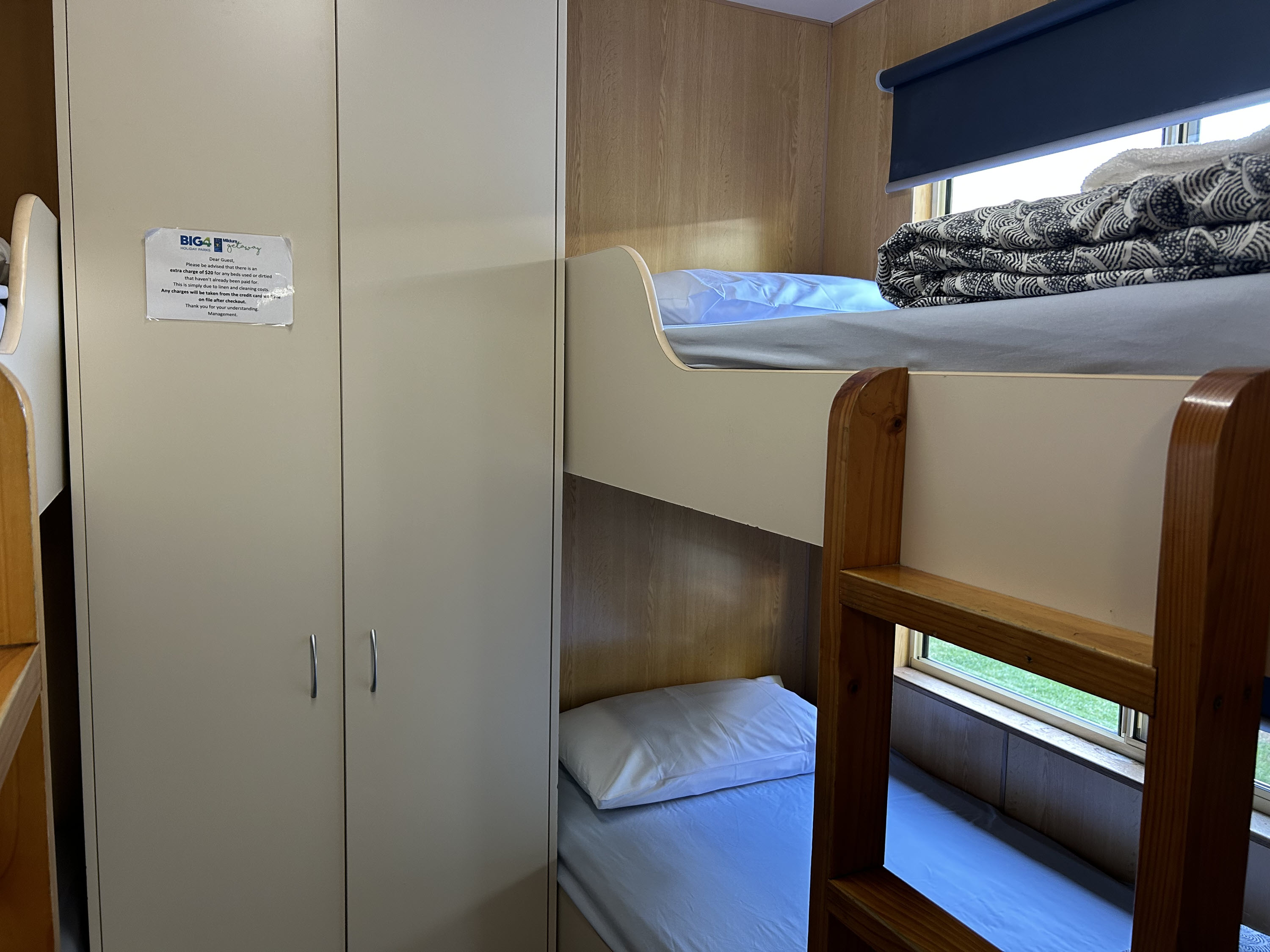 - Australian Standards state that children under nine years old should not sleep in top bunks. Please take this into consideration when making your booking.