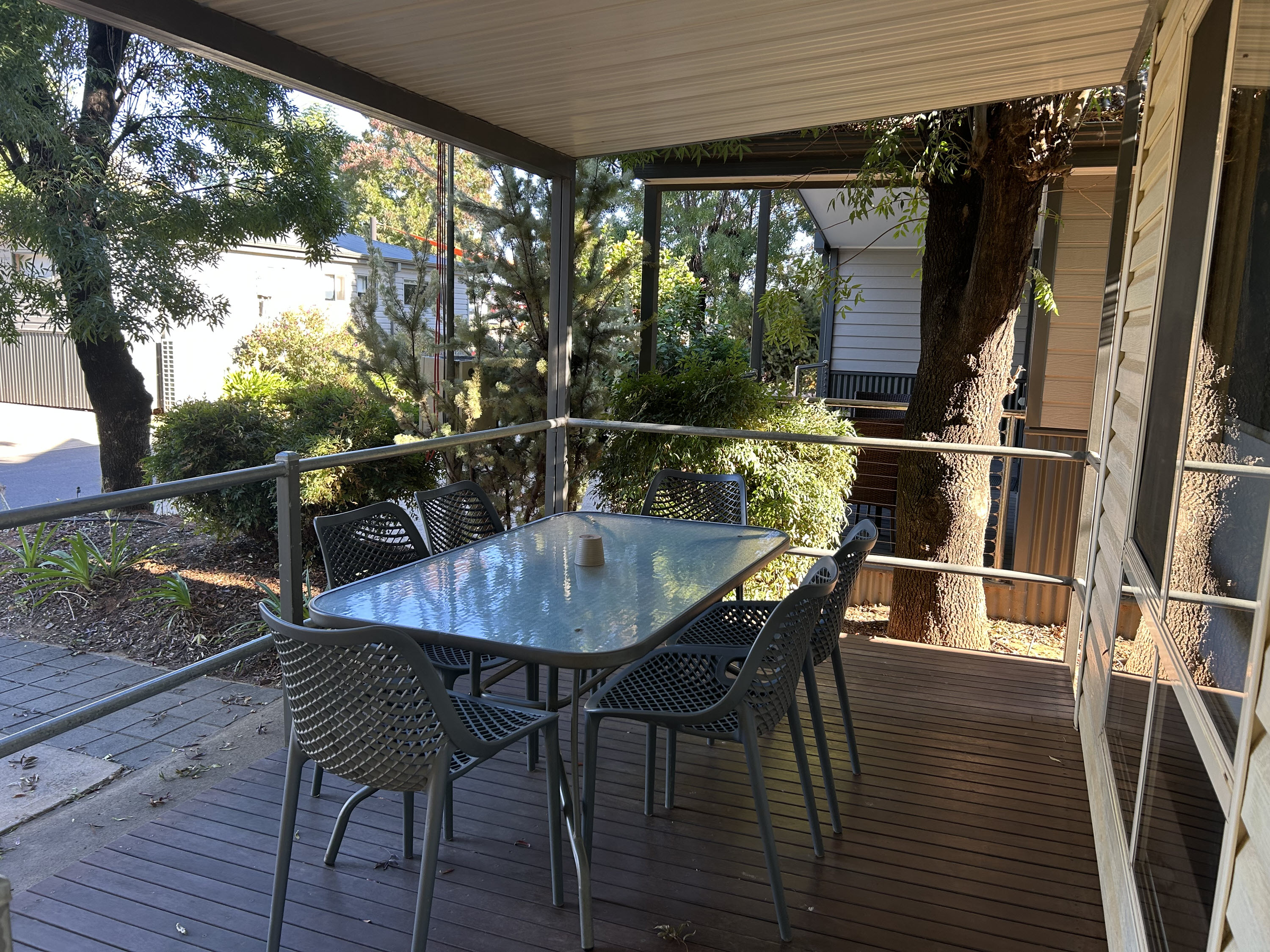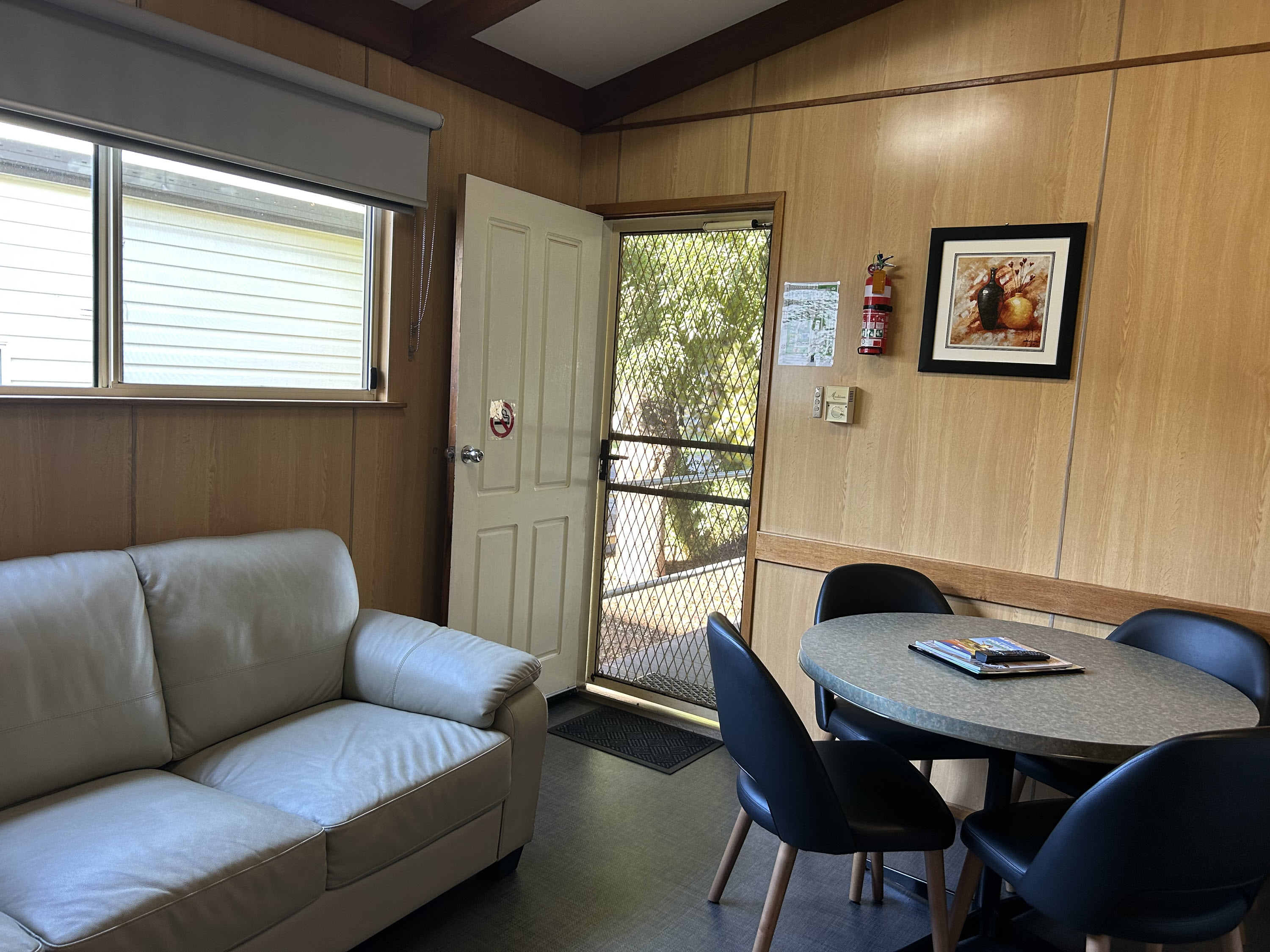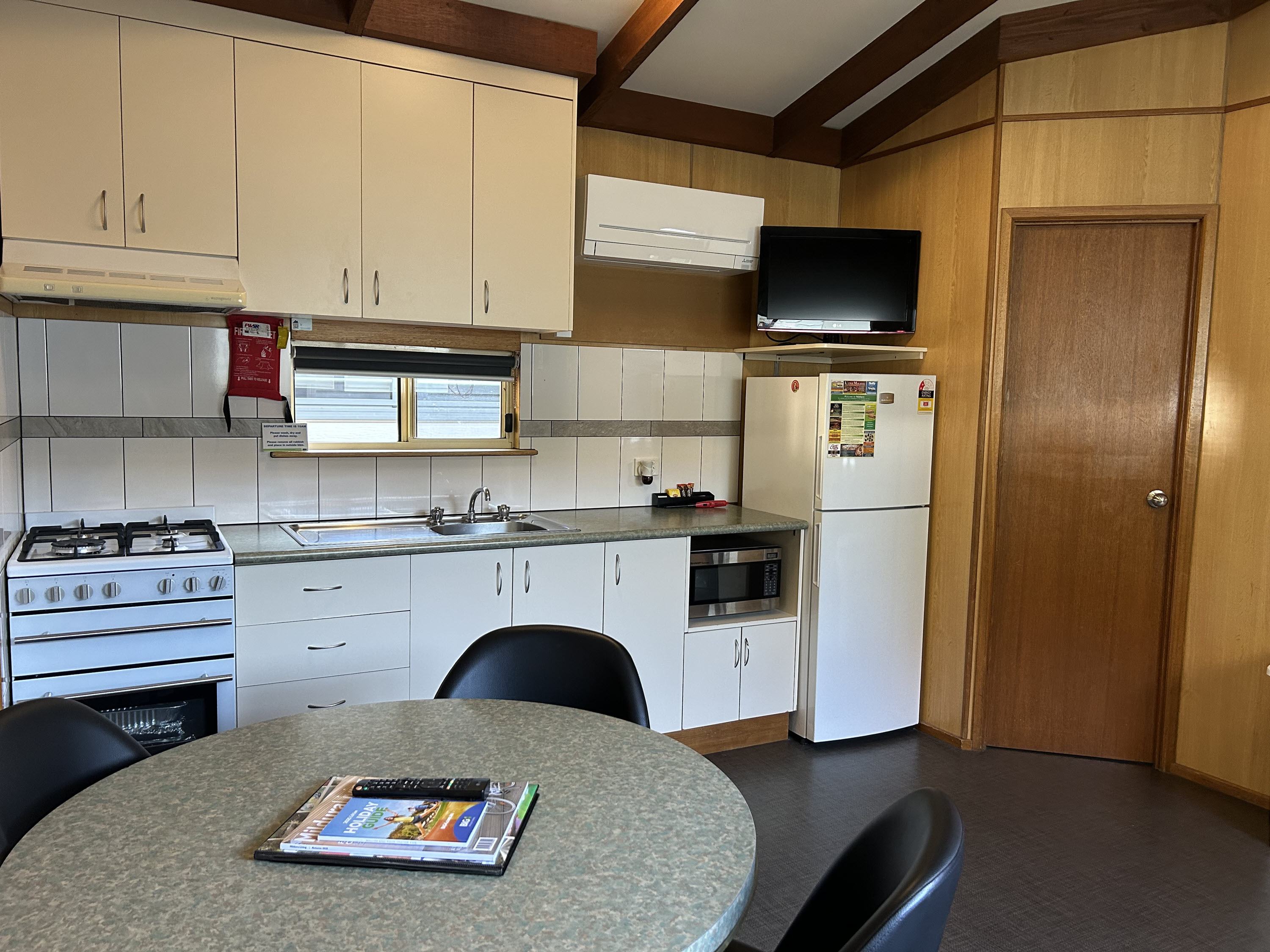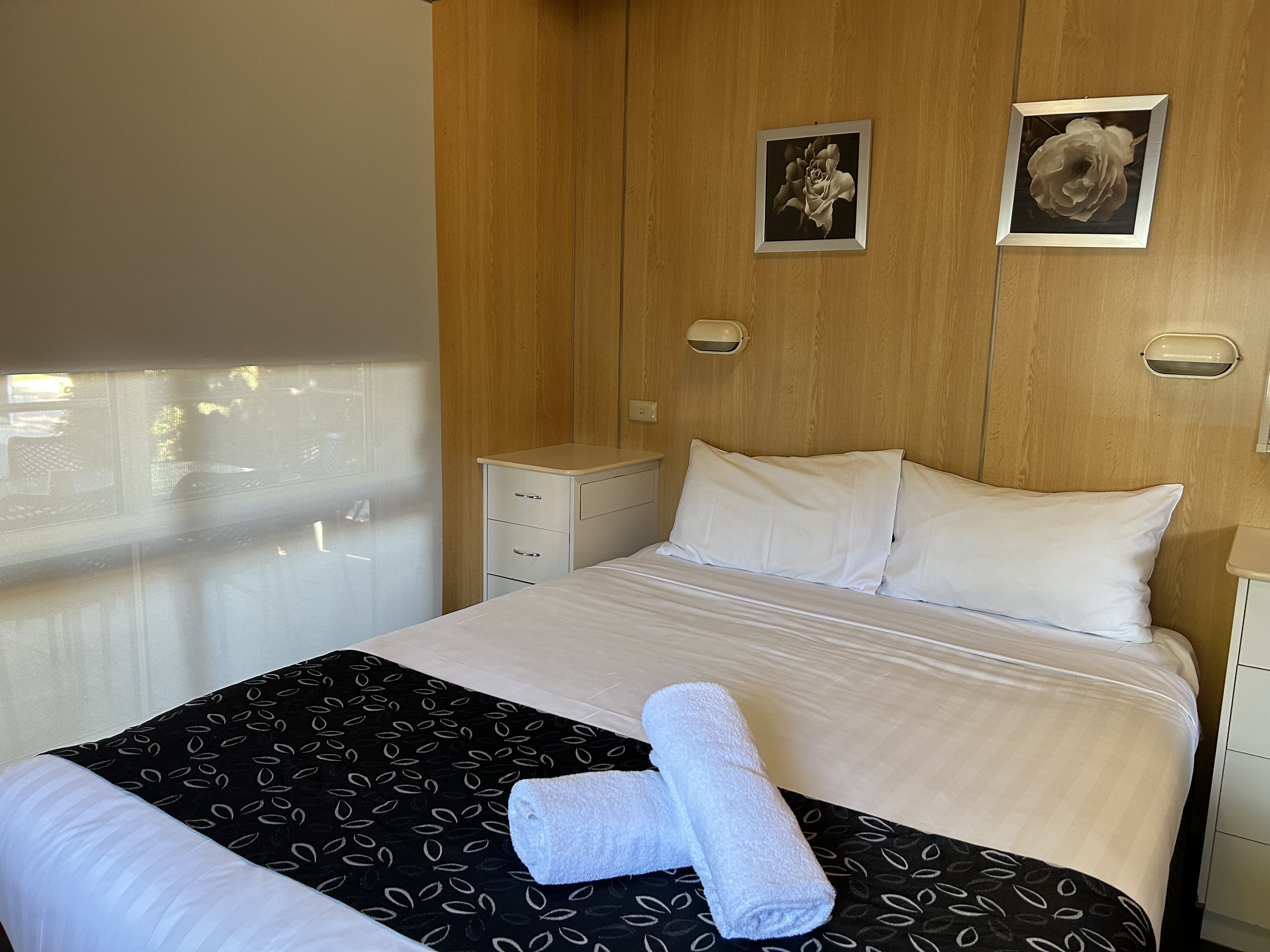 Our comfortable family units consist of 2 bedrooms. The main bedroom has a queen bed and the second has two sets of bunk beds. The fully self-contained kitchen has a microwave, cooktop, oven and full size refrigerator. The bathroom has been newly renovated and the living and dining area has a warm homely feel. Relax on the covered balcony whilst overlooking the pool.