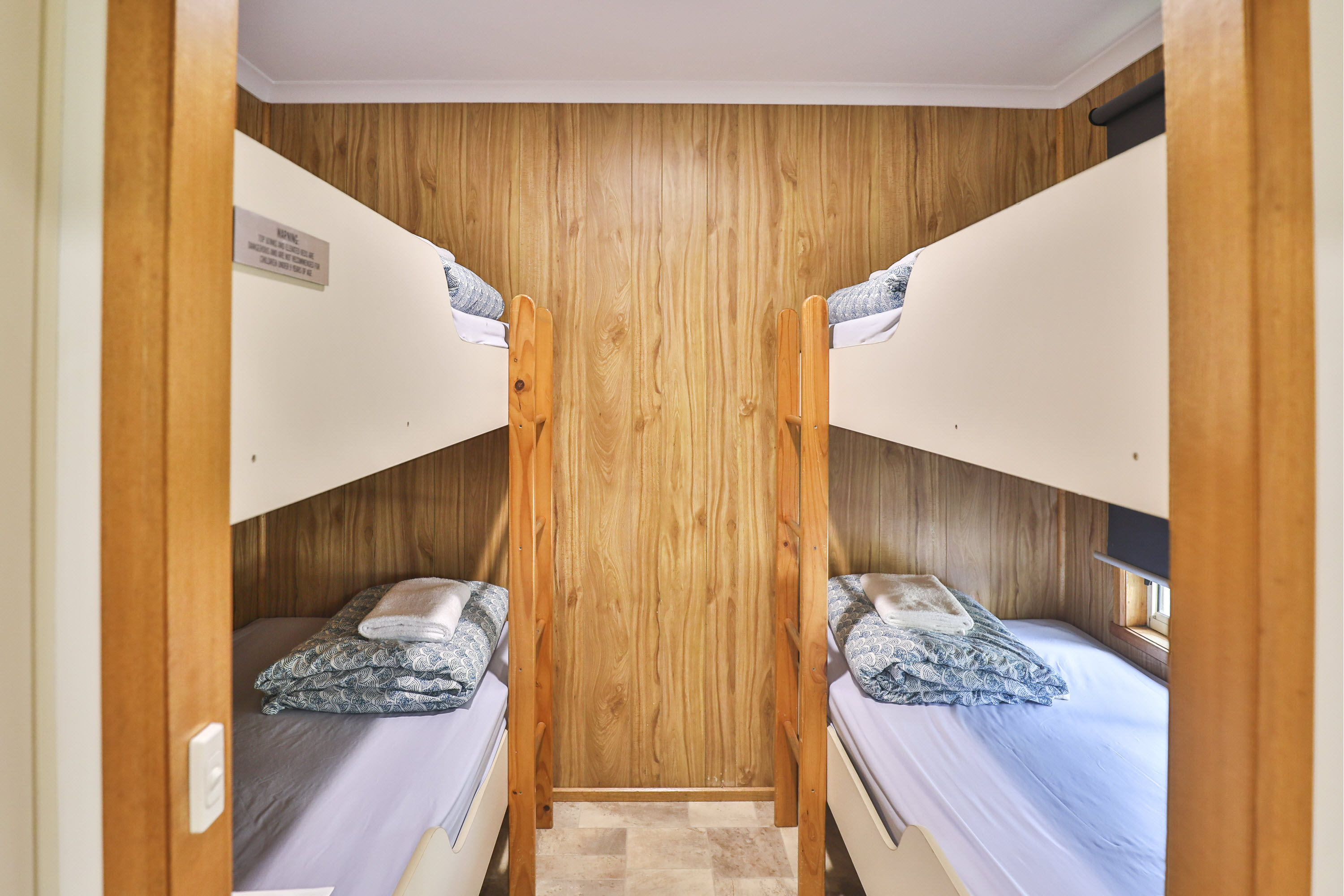 - Australian Standards state that children under nine years old should not sleep in top bunks. Please take this into consideration when making your booking.