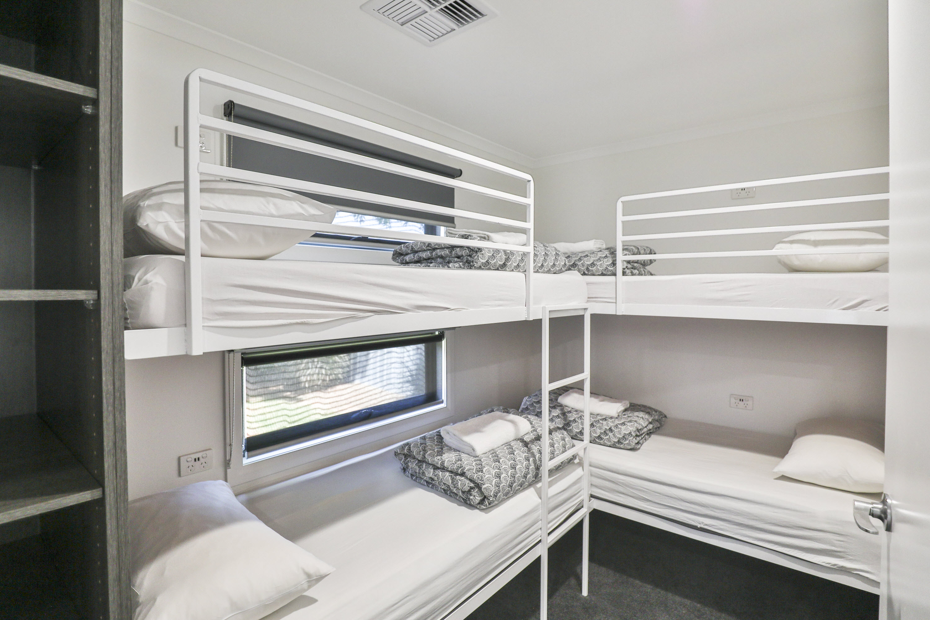 - Australian Standards state that children under nine years old should not sleep in top bunks. Please take this into consideration when making your booking.