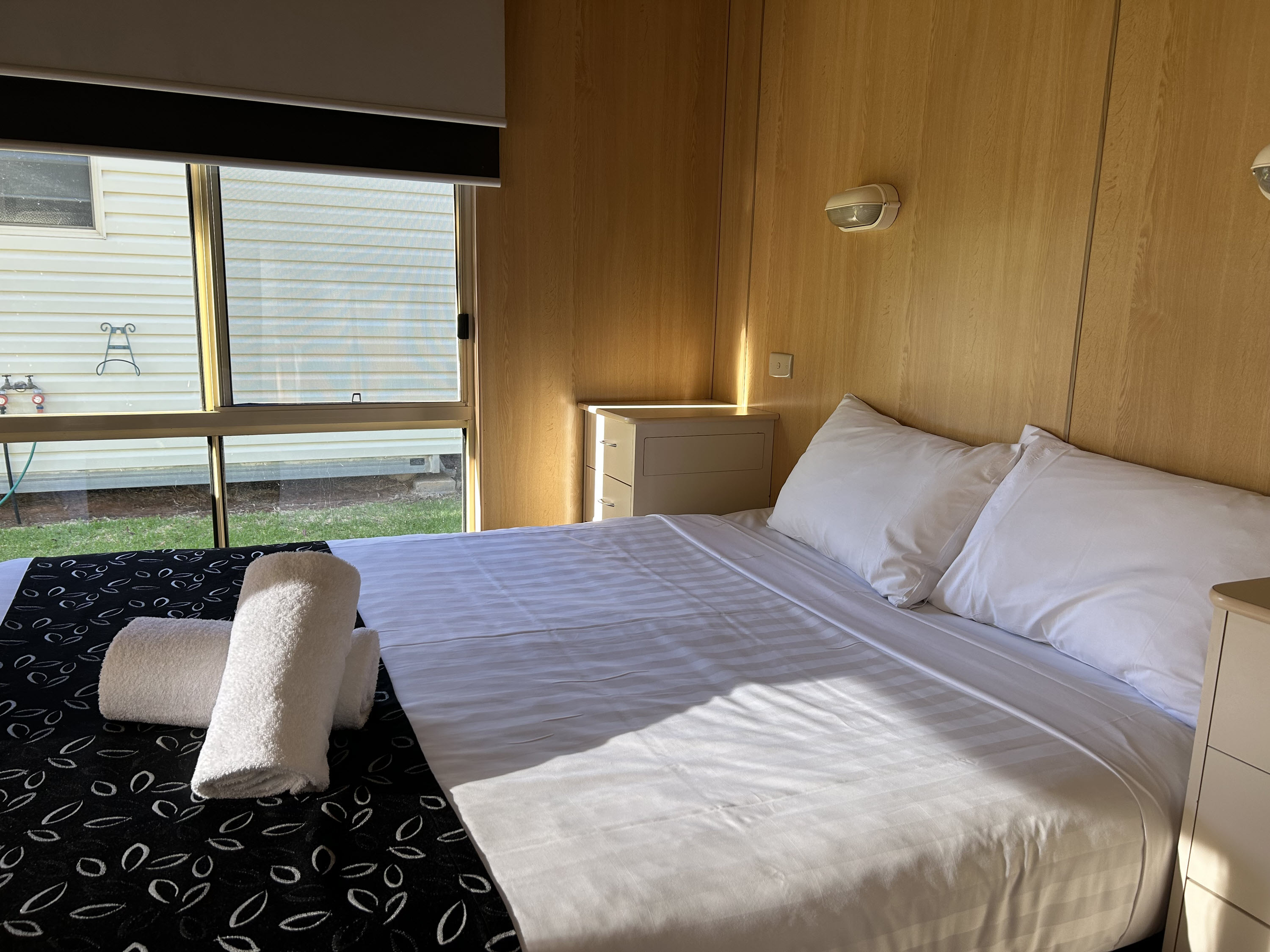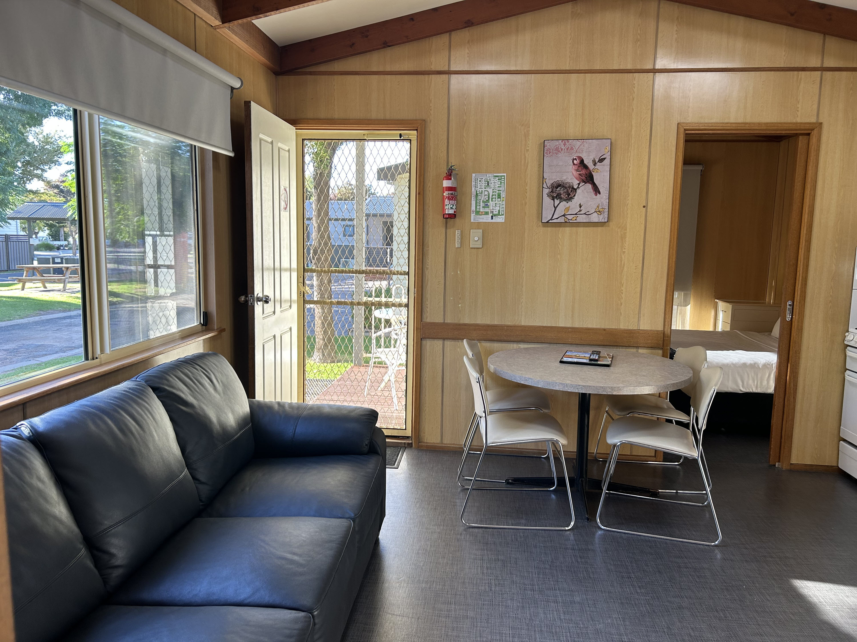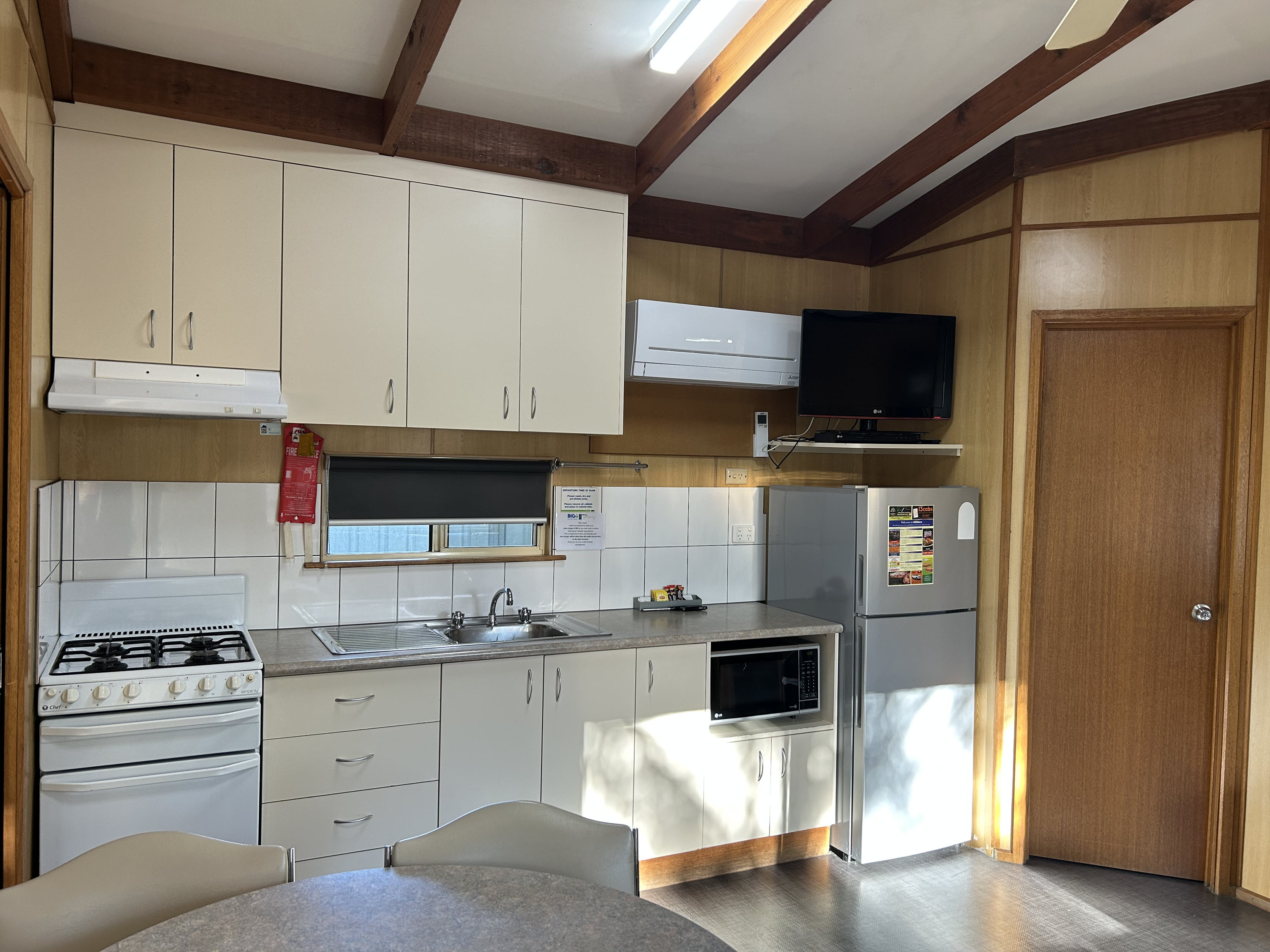 Our comfortable family units consist of 2 bedrooms. The main bedroom has a queen bed and the second has two sets of bunk beds. The fully self-contained kitchen has a microwave, cooktop, oven and full-size refrigerator. The bathroom has been newly renovated and the living and dining area has a warm homely feel.