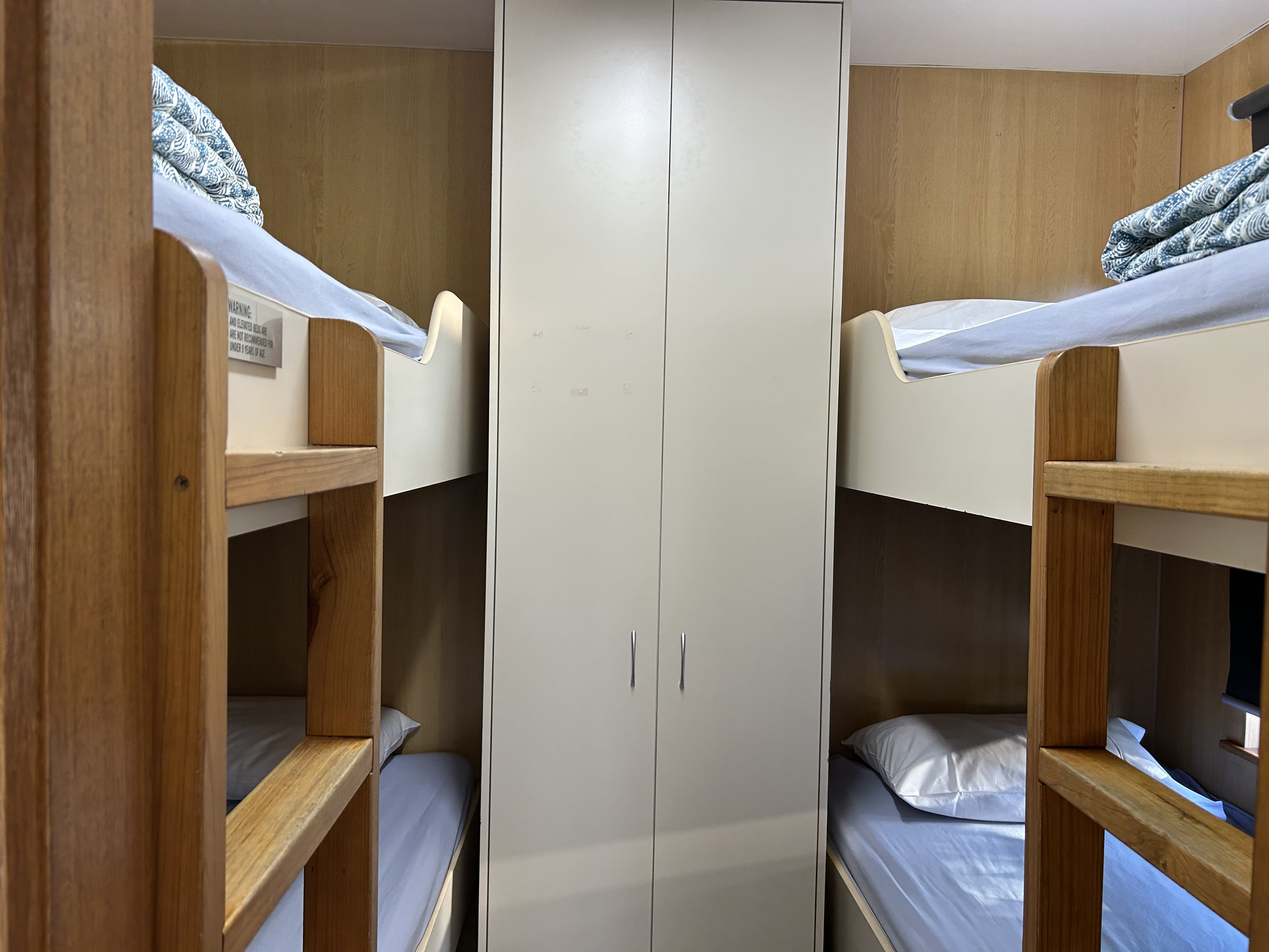 - Australian Standards state that children under nine years old should not sleep in top bunks. Please take this into consideration when making your booking.