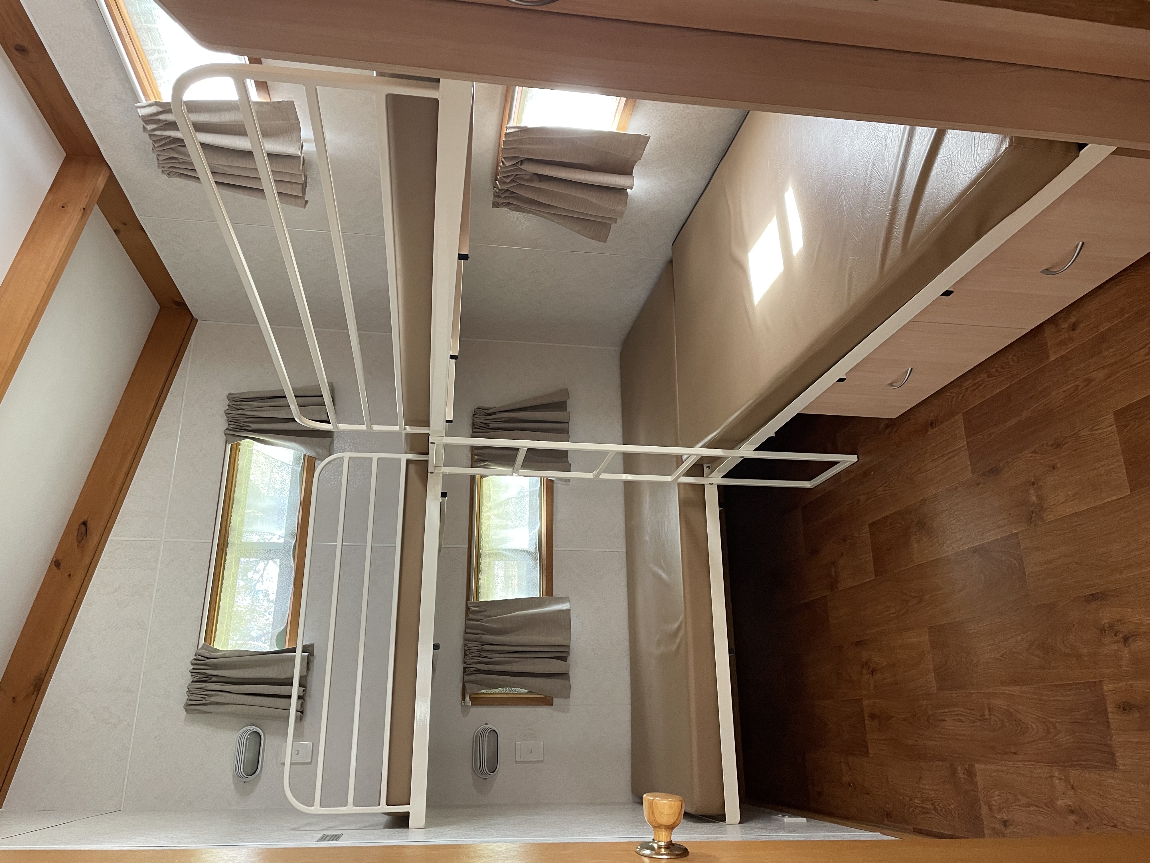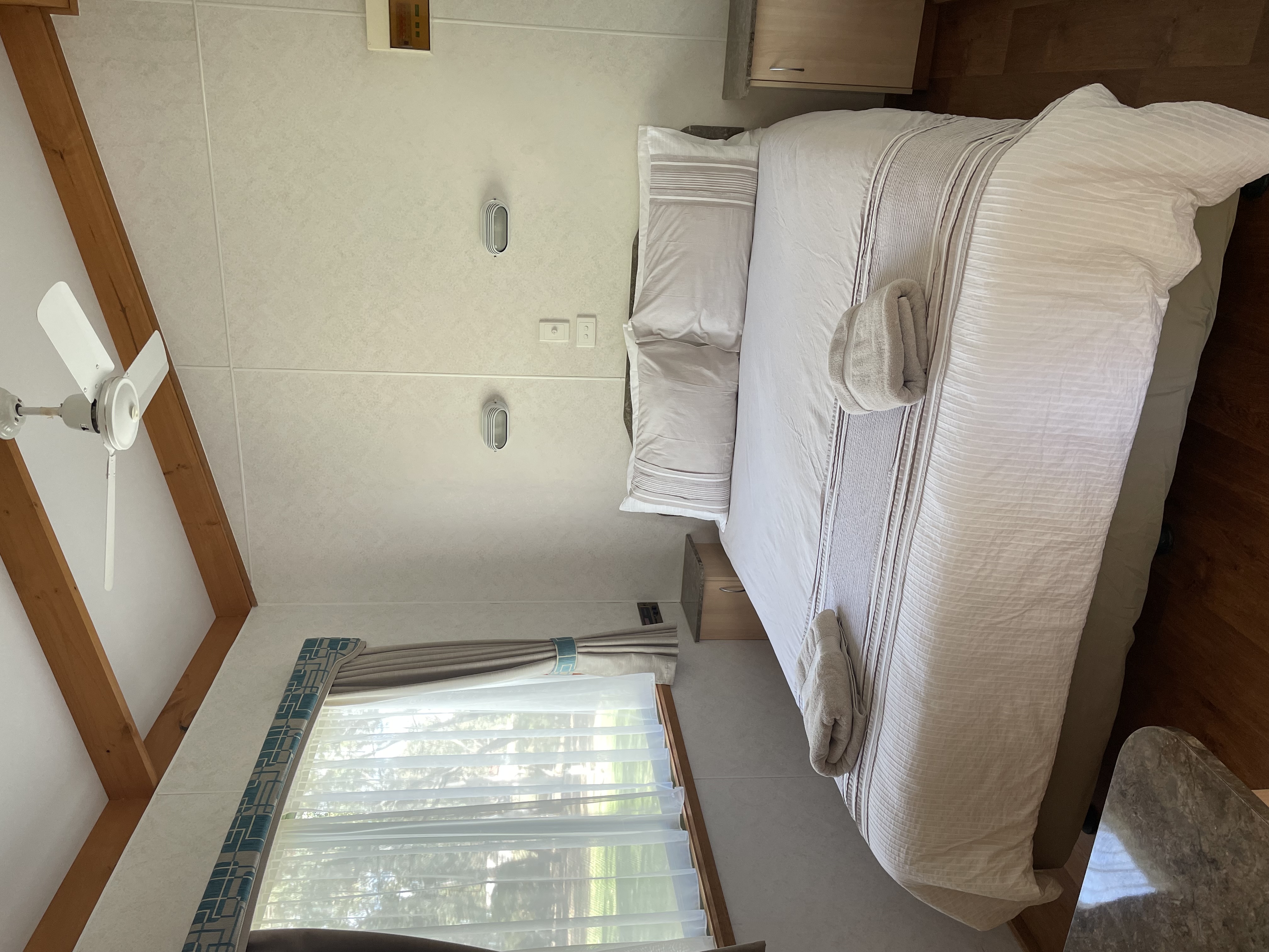 Self contained deluxe 2 bedroom cabin. This cabin sleeps 6 people, with a queen size bed in one room and two bunks in the second room.