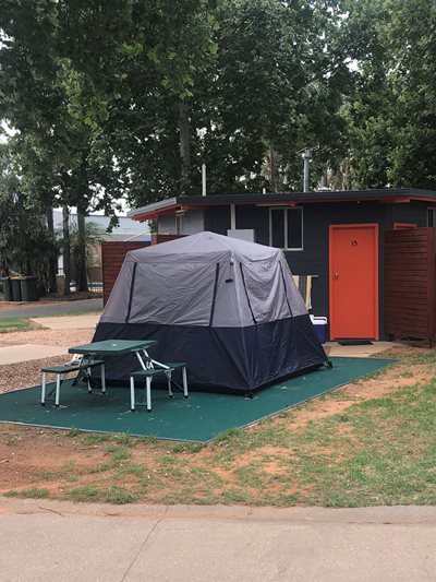 Powered site with concrete pad and private ensuite. Set close to swimming pool and playground facilities. Suitable for caravans, motorhomes and campervans. Site offers individual power, water and sullage connections. Ensuite features a shower, toilet and hand basin.