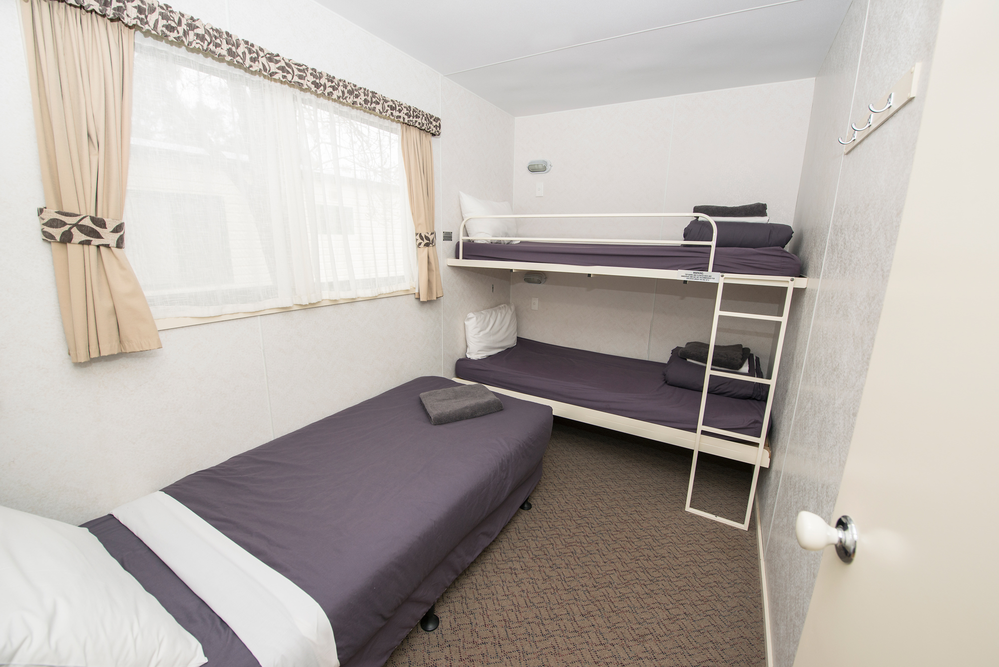 We reserve the right to refuse a booking at any time from any person reasonably believed to: • Not be the person named on the booking request • Not be the person named on the credit card or not be authorized to use the card • Not be able to pay for charges incurred • May cause damage to the property of the Park or other guests • May exhibit socially unacceptable behaviour • Be younger than 18 years and not accompanied by a responsible person over that age • Be concealing a dog that has not been approved by management • Be concealing other unauthorized animal. We reserve the right to eject guests from the park who are deemed by management to be behaving in a socially and unacceptable way; causing damage; disturbing other guests; using unacceptable language or otherwise breaking Park Rules. No refunds will be given to persons ejected. BIG4 Riverside Swan Hill reserves the right to change site and cabin allocation when necessary. No person or organisation may undertake any promotional, commercial, or marketing activities in the park without the express written permission of the owner. Australian Standards relating to the use of bunk beds state “Children under the age of 9 years are not permitted to use the top bunk. Children must not play on the top bunk.” Please take this into consideration when making your booking.