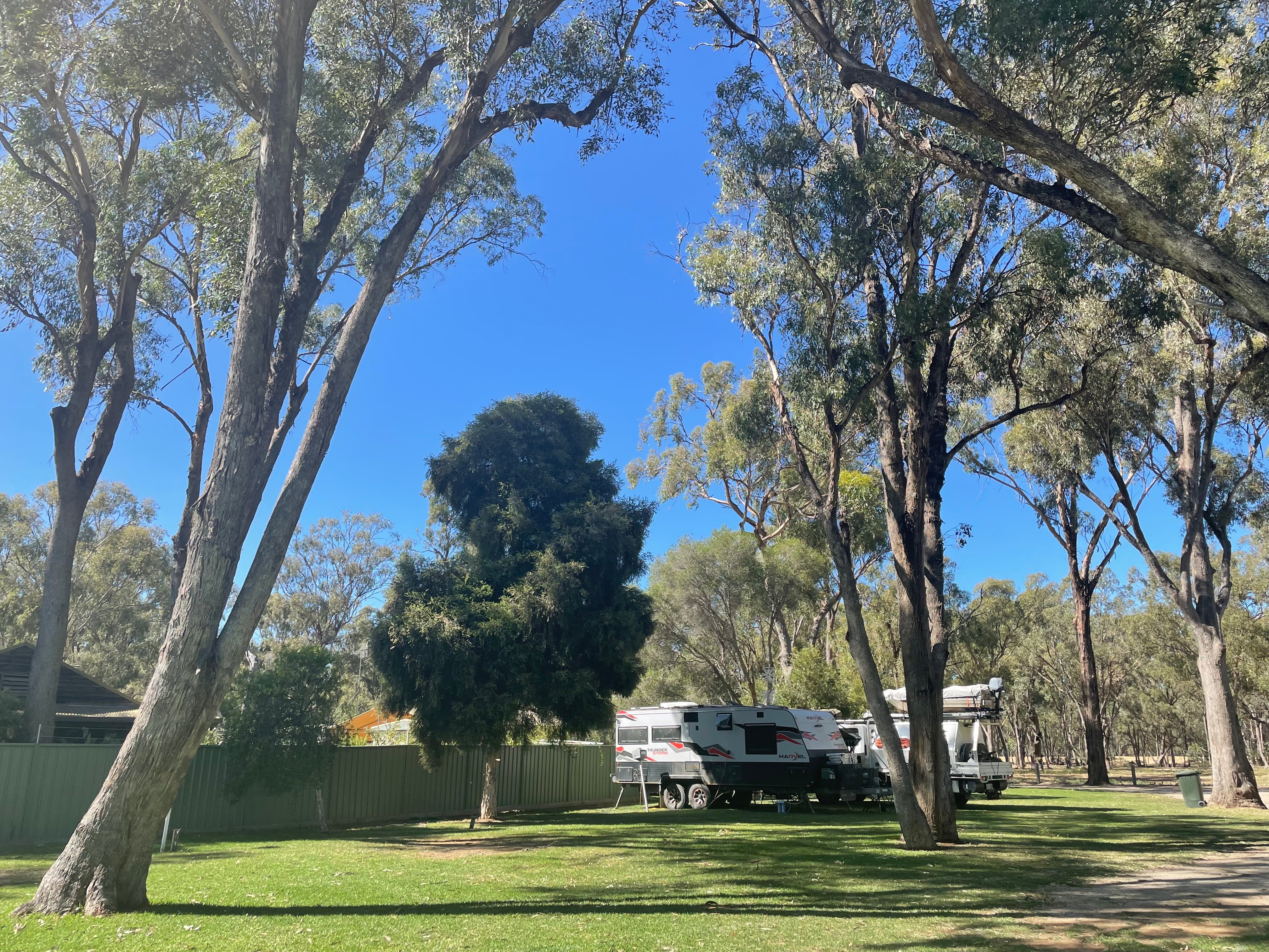 We have 10+ generously sized level unpowered sites set amongst shady trees near the entrance to the park only a minutes walk from the Murray River. Our unpowered sites are suited for smaller caravans, camper trailers and tents set out amongst the trees in a large open grassed area.