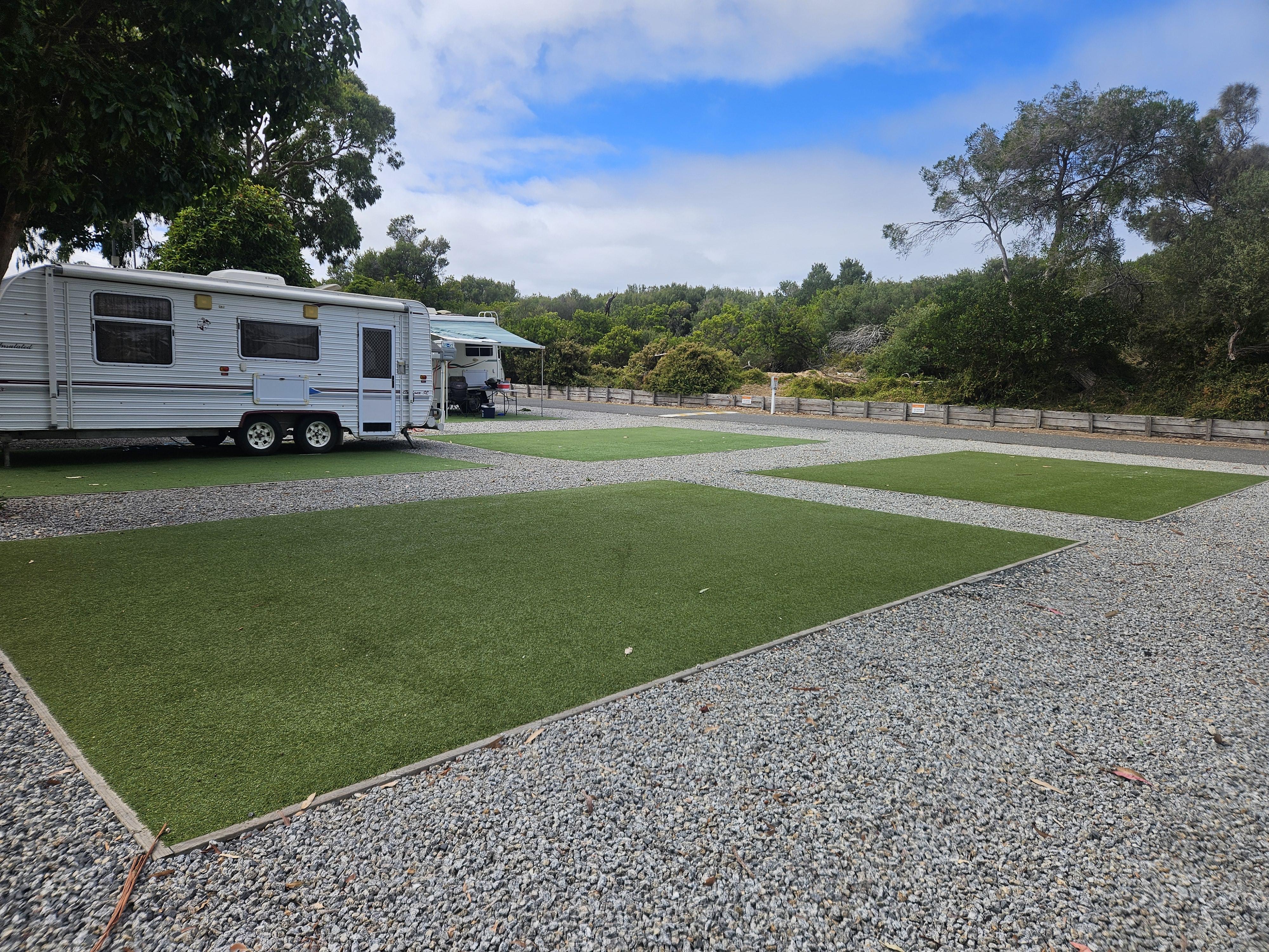Convenient and easy access Drive Through Powered Site, perfect for caravans or motorhomes. No need to reverse, simply drive in and out with ease. Includes access to power, water and nearby park facilities.