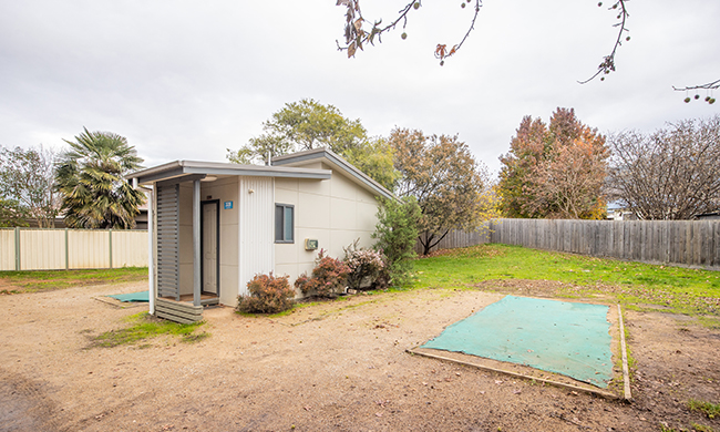 Mat site with private ensuite including shower and toilet, suitable for caravan, motorhome, campervan or tent. Set back from the creek, within walking distance to park facilities including camp kitchen and recreation room.