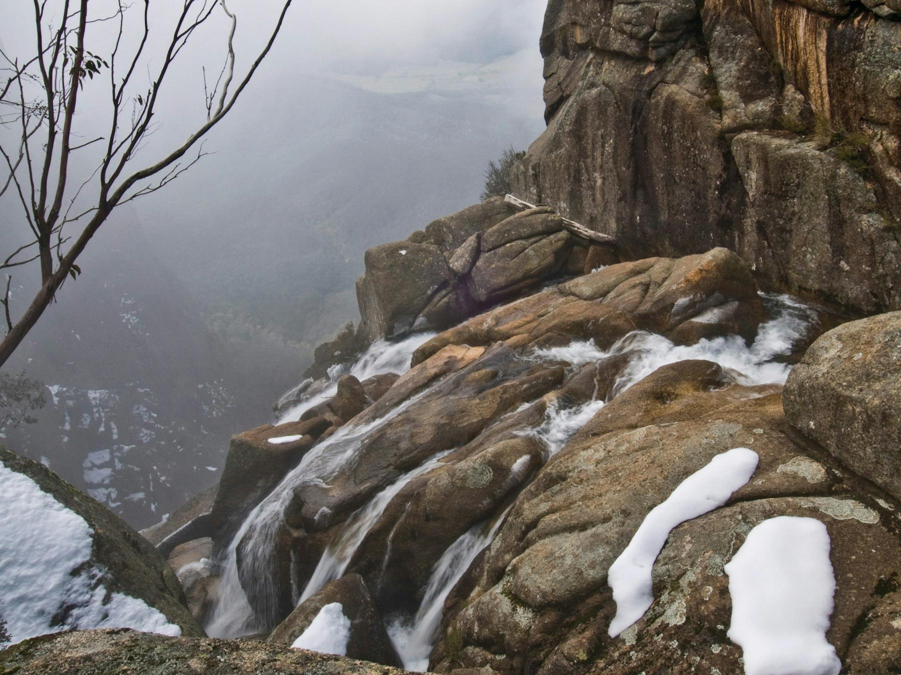 Mount Buffalo National Park has sheer cliffs, imposing granite tors, tumbling waterfalls, snow gums and stunning wildflowers. The park features over 90 kilometres of walking tracks, panoramic scenery, waterfalls and scope for adventurous pursuits such as rock climbing and hang-gliding.