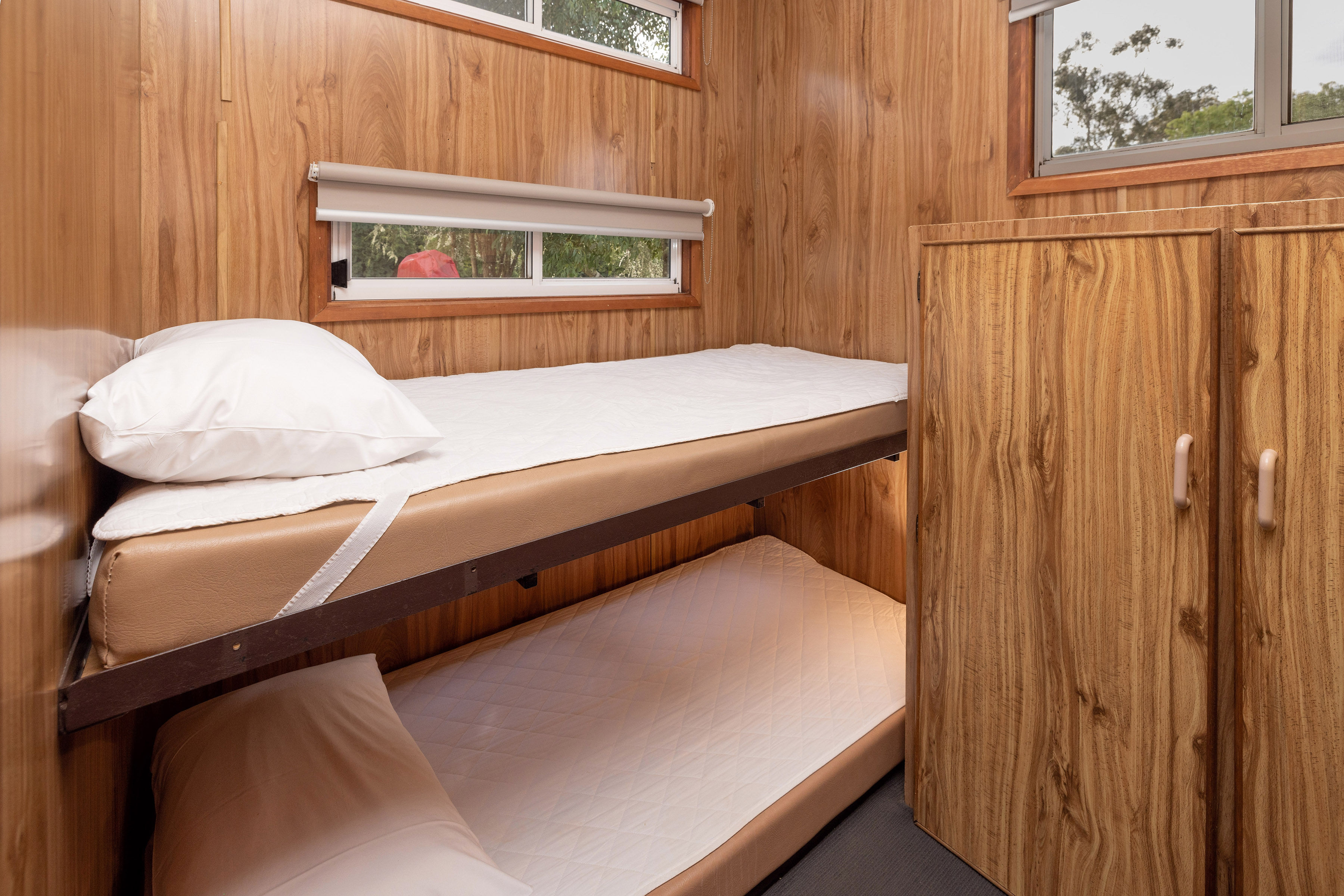 Australian Standards relate to the use of bunk beds and state that: "Children under the age of 9 years are not permitted to use the top bunk. Children must not play on the top bunk" Please take this into consideration when making your booking.