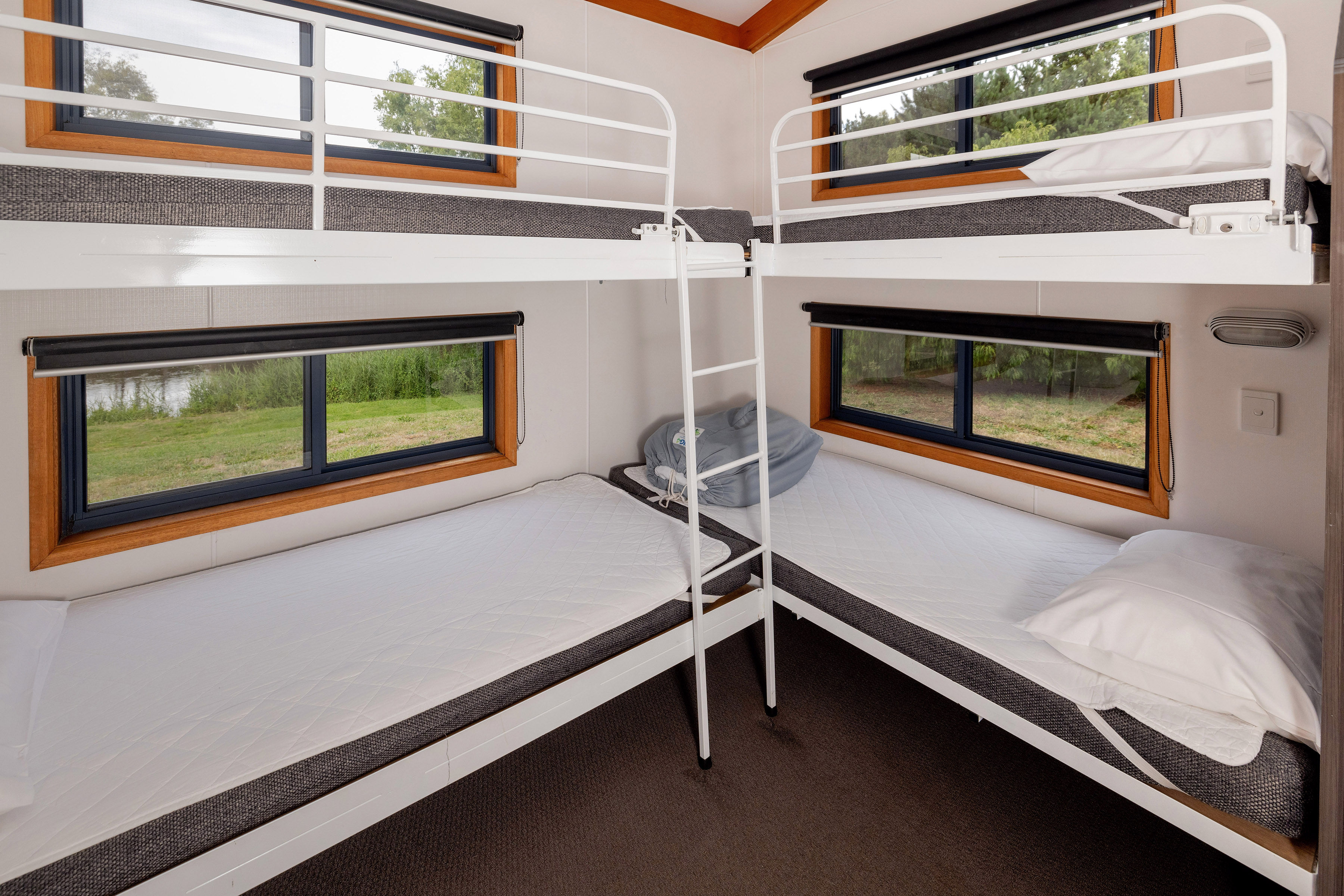 Australian Standards relate to the use of bunk beds and state that: "Children under the age of 9 years are not permitted to use the top bunk. Children must not play on the top bunk" Please take this into consideration when making your booking.